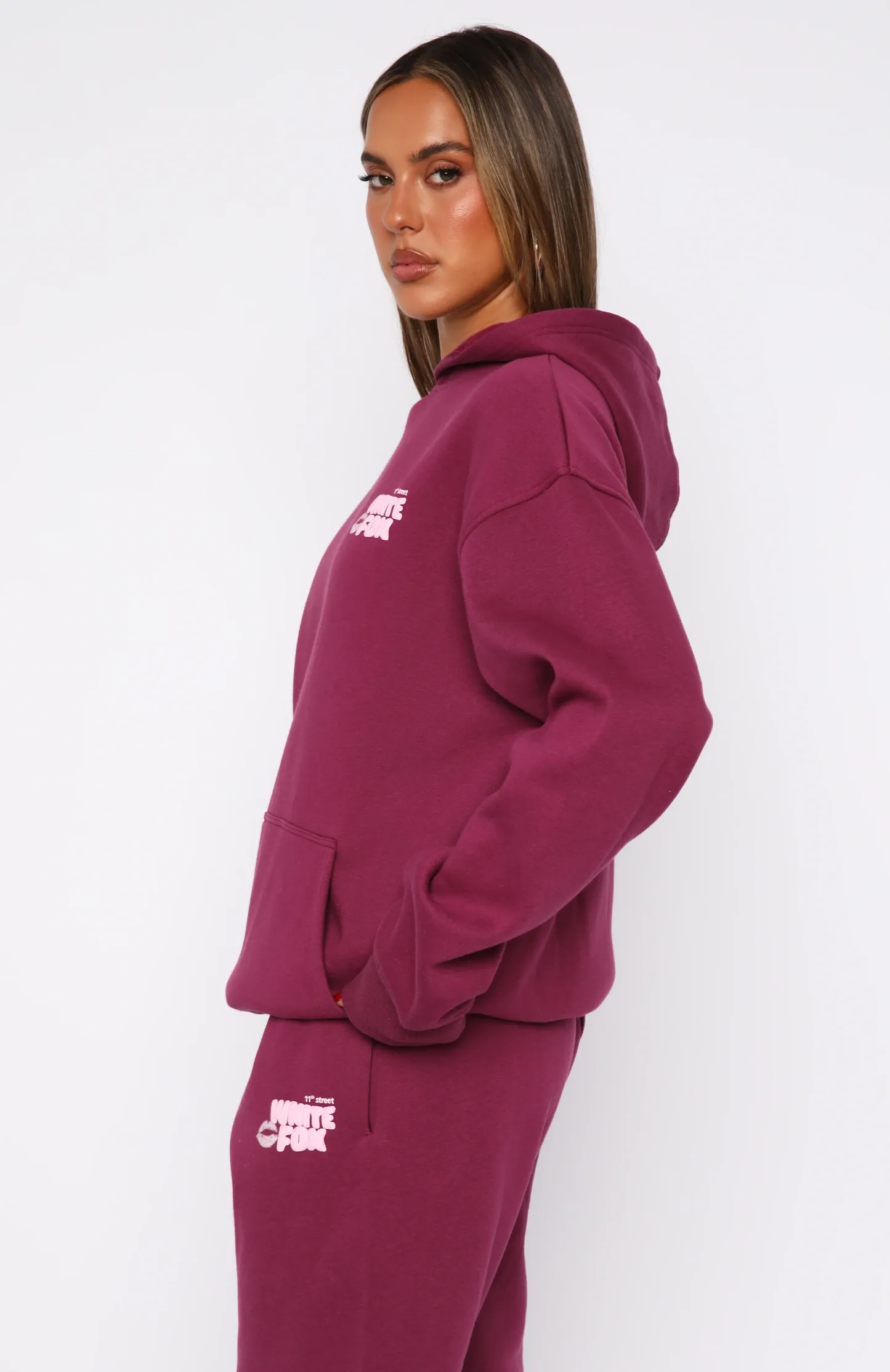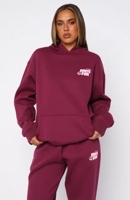 Listen to your heart and add the The 11th Street Sweet Kisses Oversized Hoodie Very Berry to your cart! Features an oversized fit and features elasticated ribbed cuffs & hem, front pocket, hood, soft fleeced fabric for extra comfort and logo detailing side front and centre back. Style with the matching 11th Street Sweet Kisses Sweatpants Very Berry for the full vibe!?