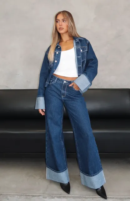 Double up your denim collection with the Charlotte Mid Rise Wide Leg Jeans Dark Indigo. Featuring front button and zipper closure, belt loops, 5 pocket design, folded hem design, WF logo detailing, and unlined, denim material. We can't get enough of these styled with the matching?Charlotte Denim Jacket Dark Indigo!?