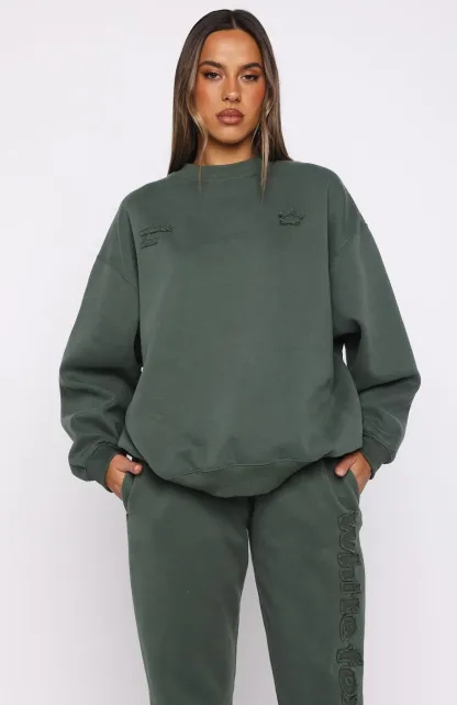 Add a pop of colour to your lounge look with the From The Archives Lexi Oversized Sweater in Khaki. It features a classic crew neckline with ribbed trim, drop shoulders, and long sleeves with ribbed cuffs for a oversized fit. The ribbed waistband and distressed White Fox text at side font and centre back add playful detail. Match it with the From The Archives Lexi Sweatpants for the coziest coordinated set yet.