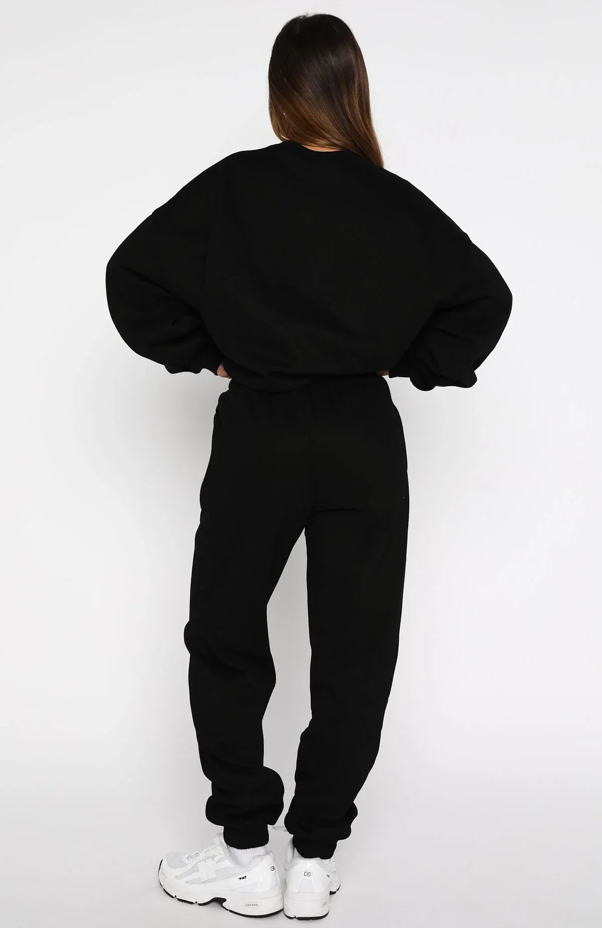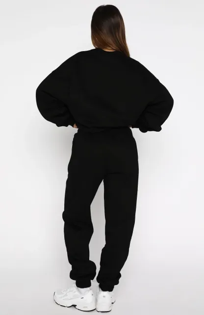 Lounge lovers are obsessed with the Test Drive Sweatpants Black! Designed with a thick elasticated waistband featuring an external drawstring tie, side pockets, elasticated cuffed ankles, and a relaxed silhouette. The White Fox puff-print metallic text at the side adds a signature touch, while the unlined fleece interior ensures a cozy feel. Style with the matching Test Drive Oversized Sweater for a cozy yet cool fit.