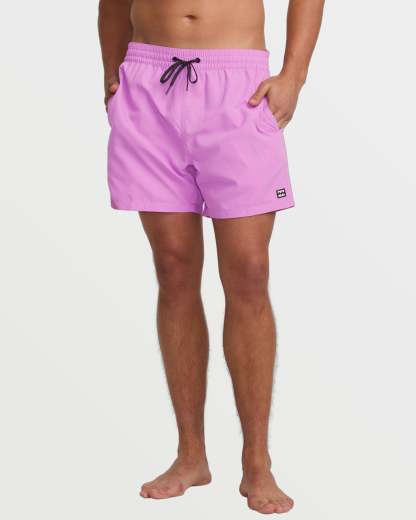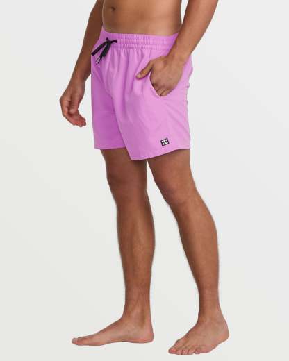 Our Billabong All Day Layback Trunks deliver top comfort and easy style in Supreme Suede. The 16" layback fit and elastic waist keep you chill, while side pockets stash essentials for beach days or laid-back everyday wear. Cool, casual, collected. Featured here in the Fuschia colorway.