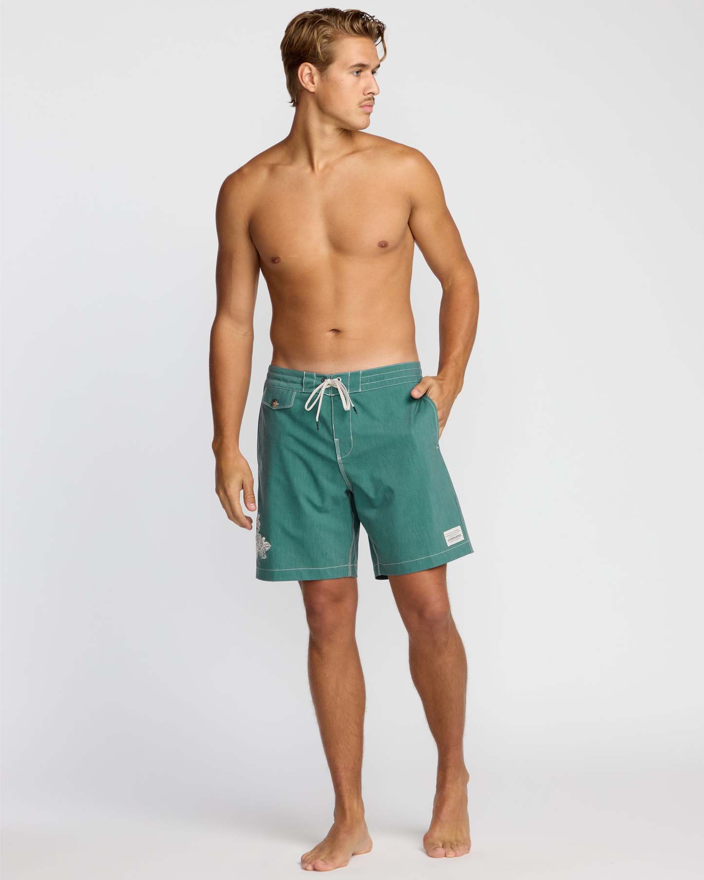 Our 18.5" Lo Tide boardshorts move with you, thanks to 4-Way Pro Stretch fabric. A fixed waist keeps things secure, while the back patch pocket holds small essentials during your beach adventures. Featured here in the Blue colorway.