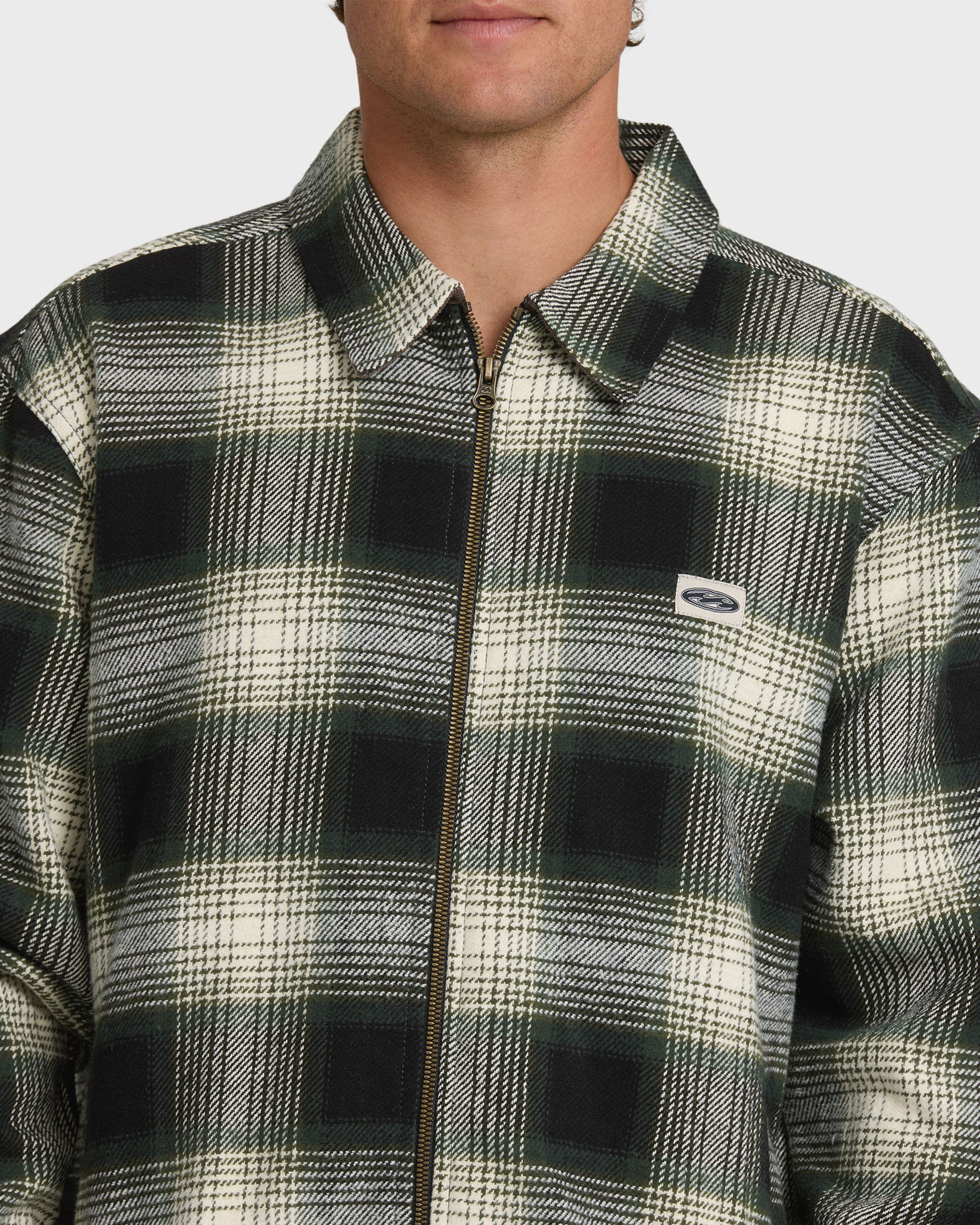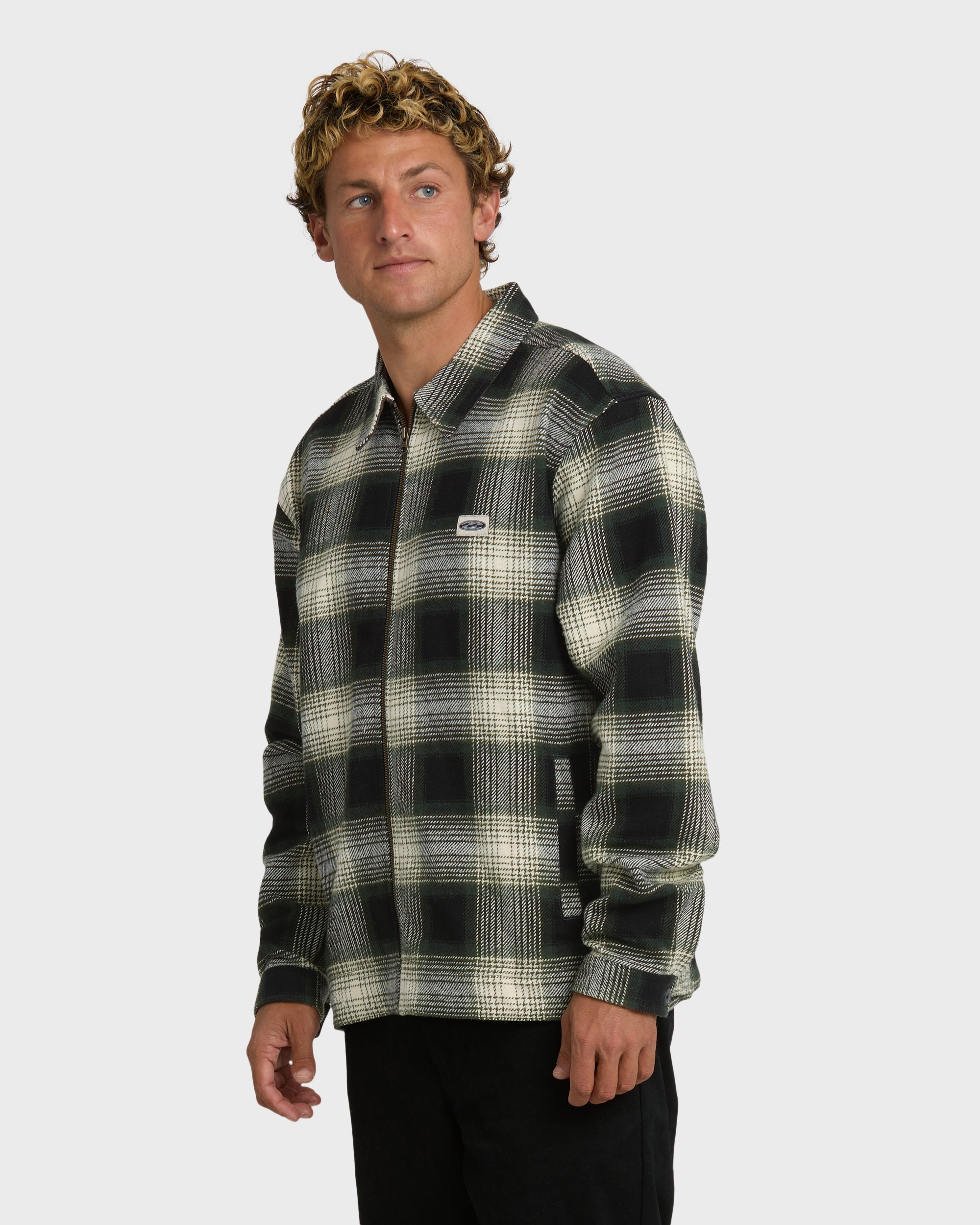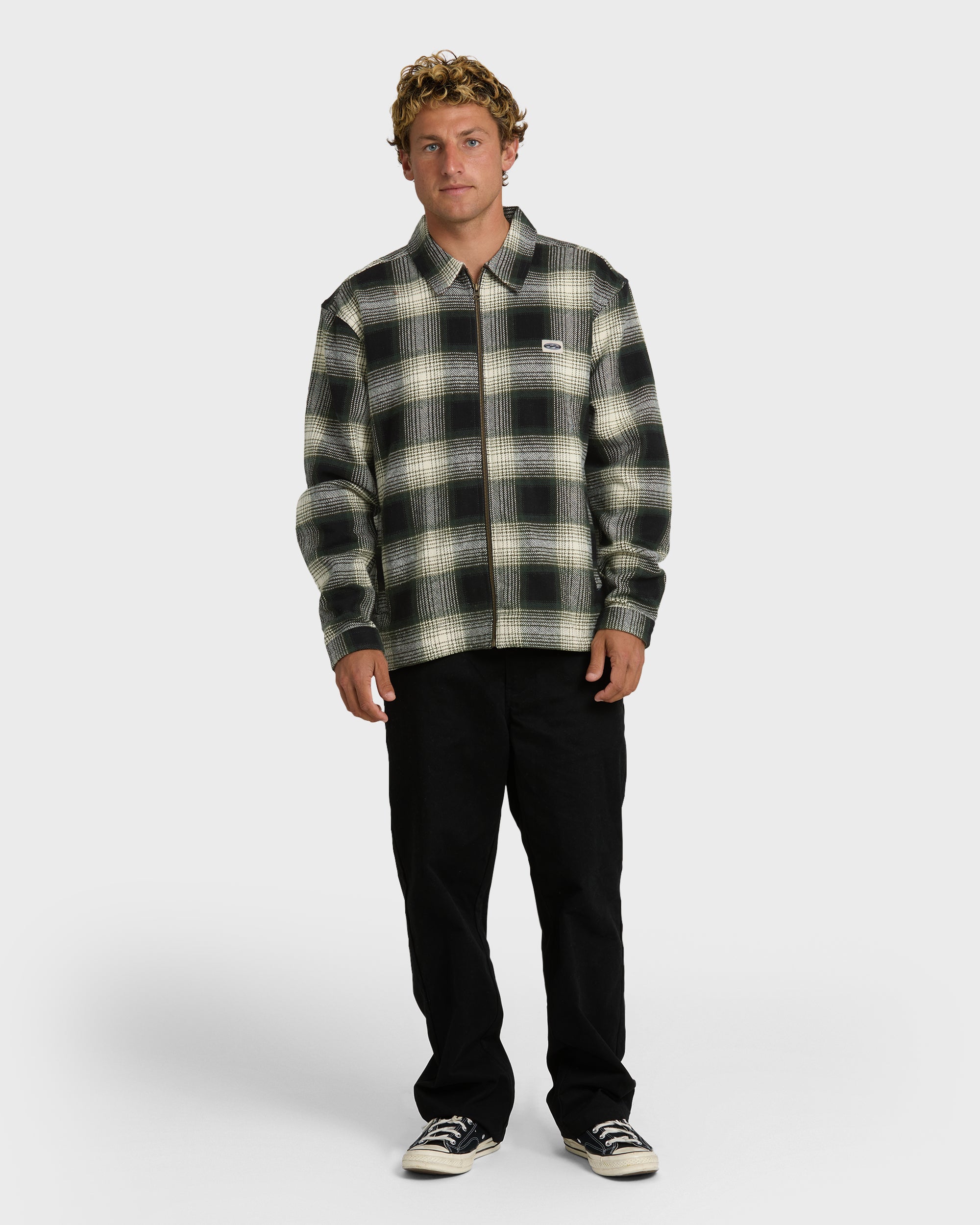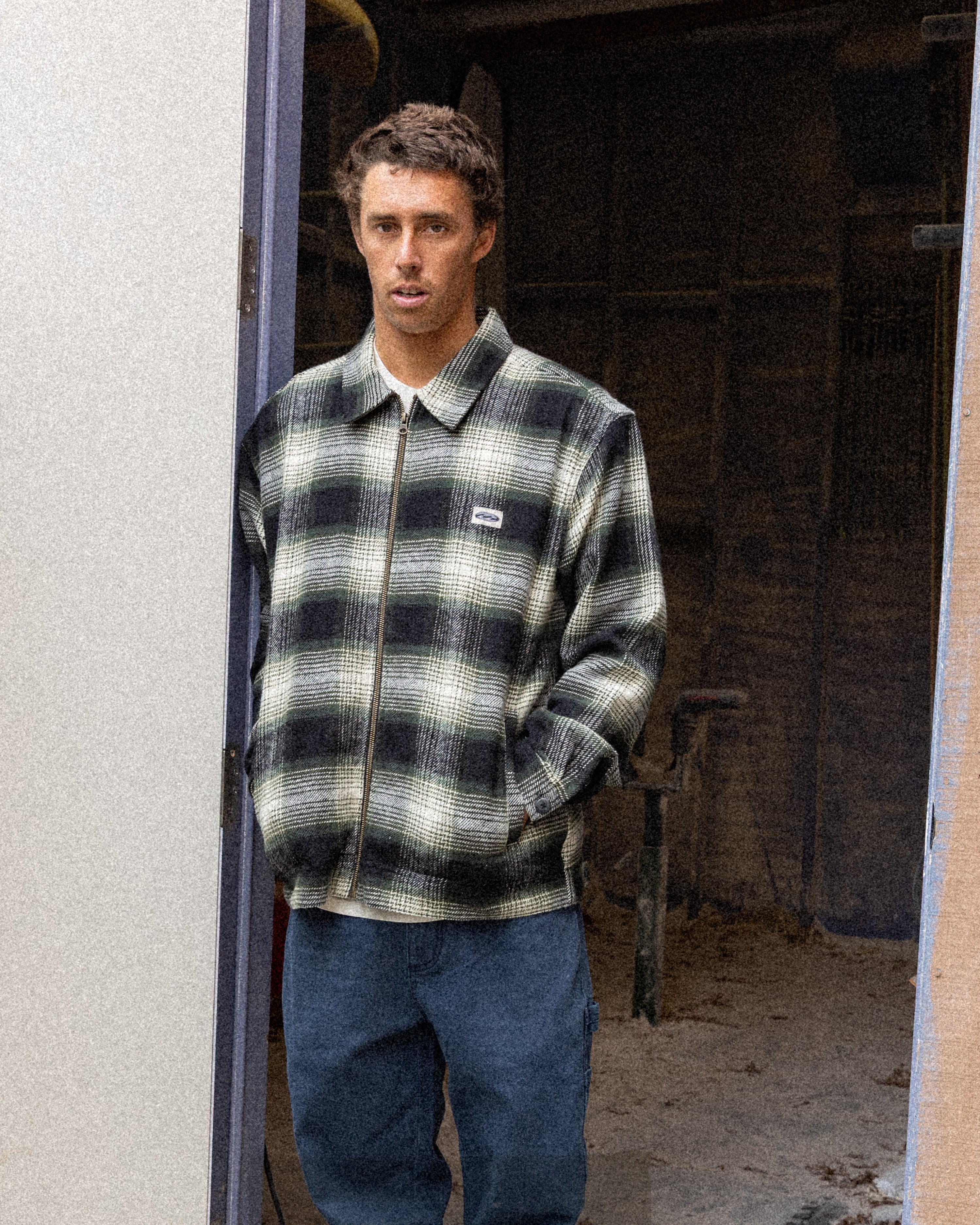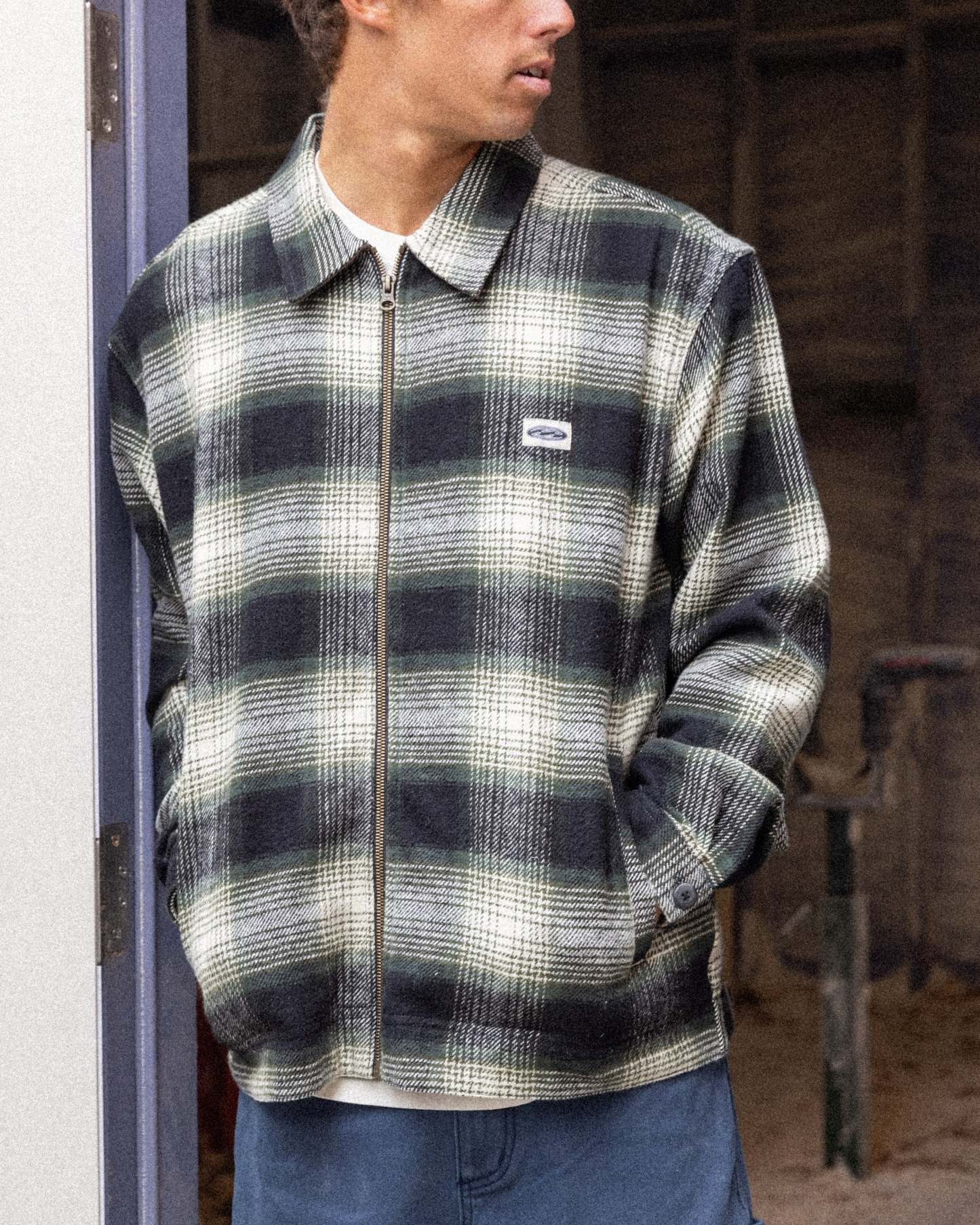 Clean lines and quality construction meet 90s surf grunge in our Bog Dog Jacket in Black. This rugged shell jacket is crafted in 100% cotton flannel with a zip front, pockets, and distinctive corduroy collar detail. The boxy fit makes it perfect for layering over your favorite tees.