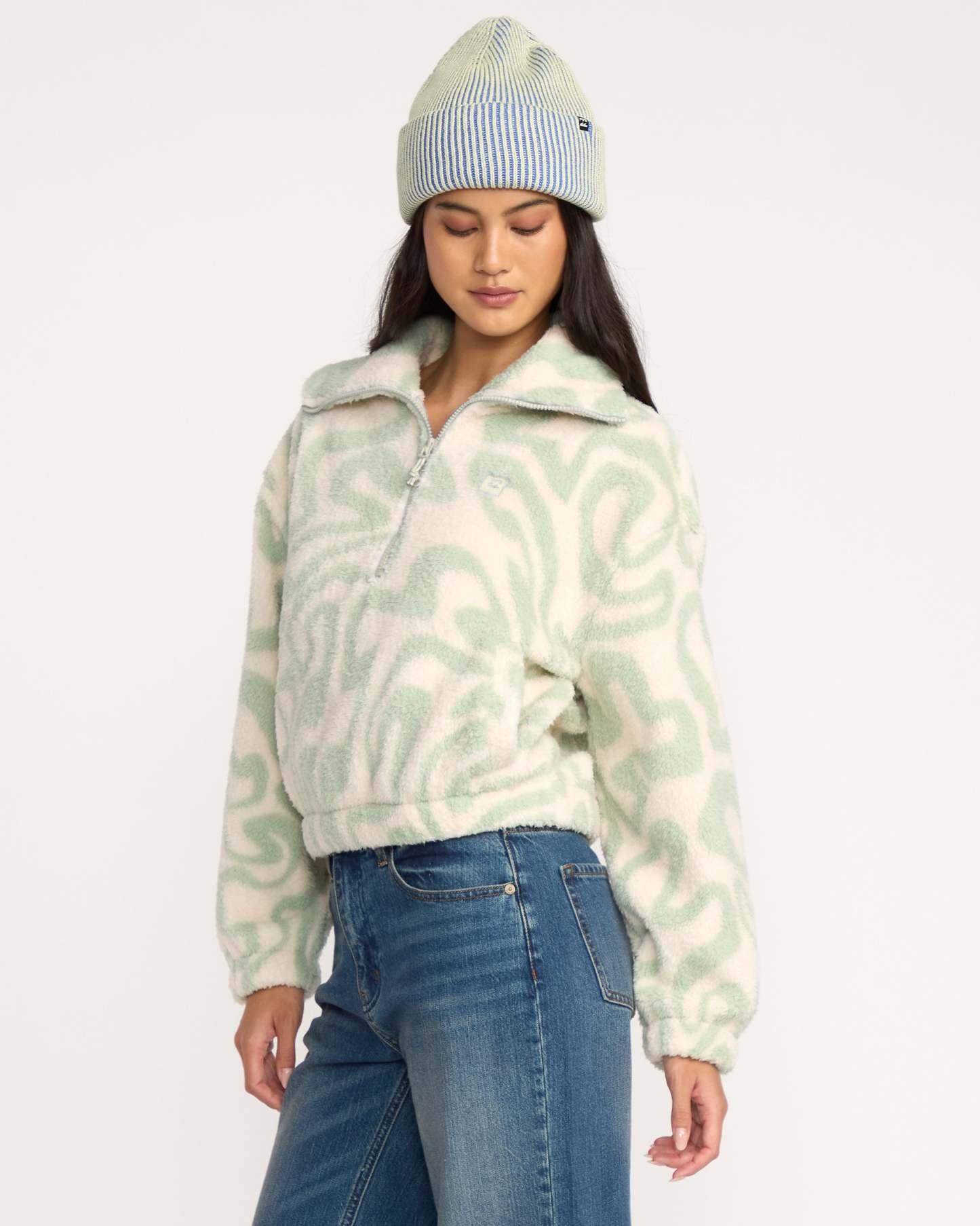 Wrap yourself in cozy high-pile sherpa fleece with our relaxed-fit half-zip pullover. Features convenient hand pockets and elasticated cuffs to keep warmth in, making this the perfect layer for chilly days. Featured here in the Green colorway.