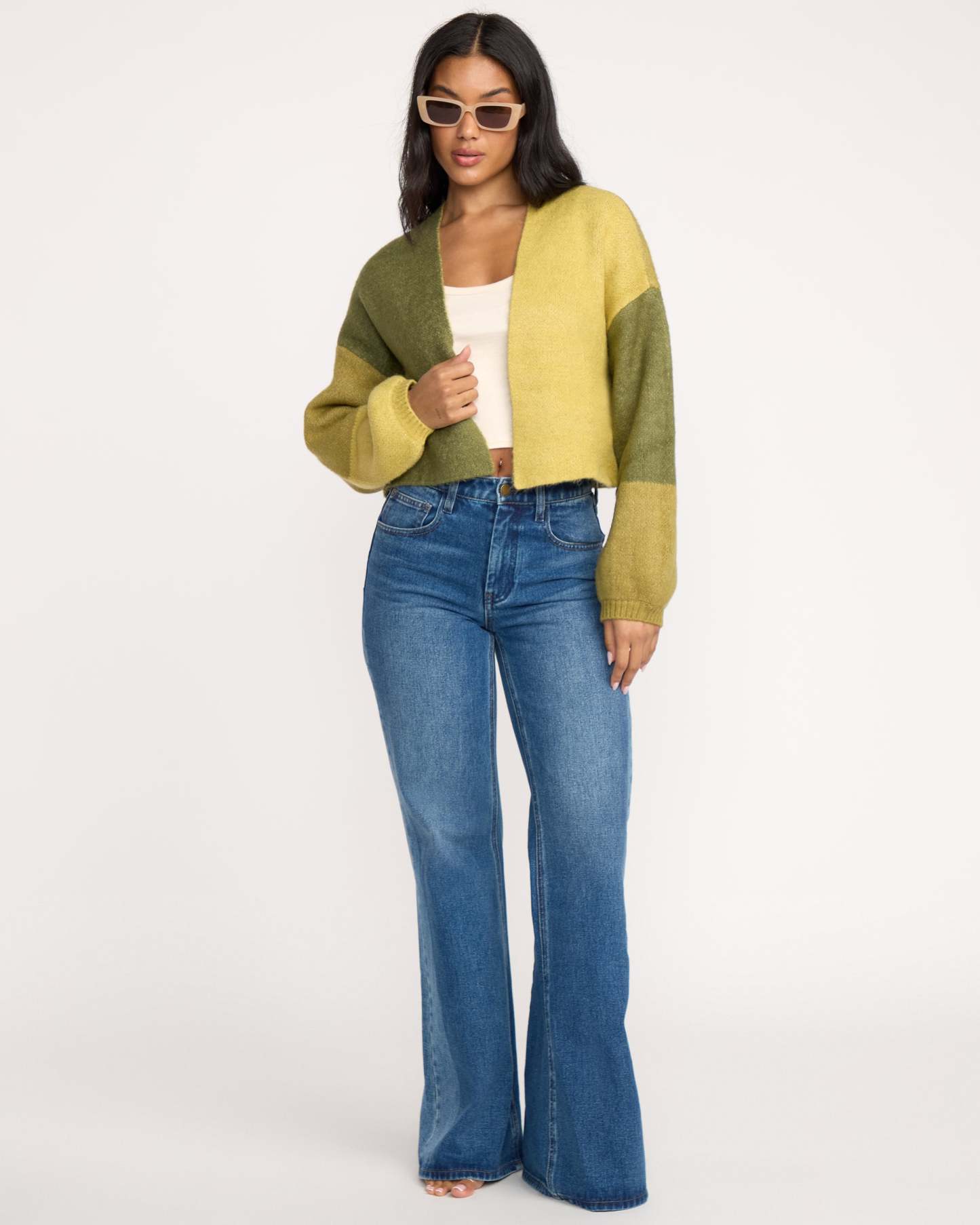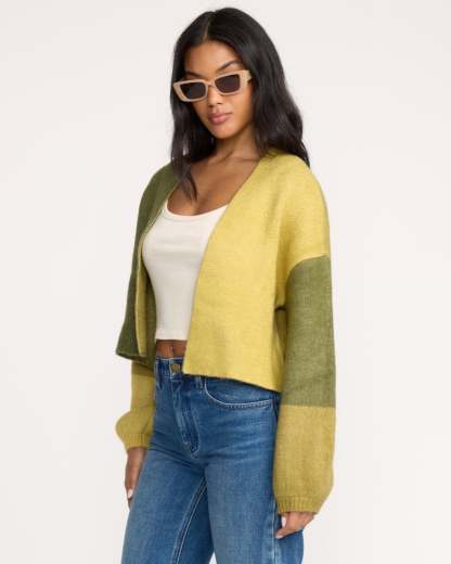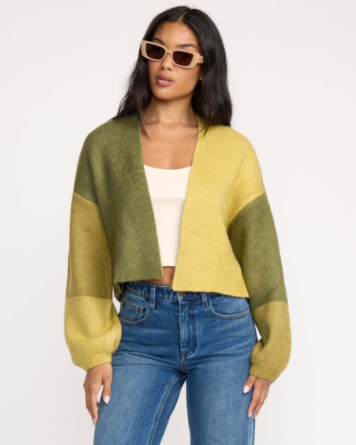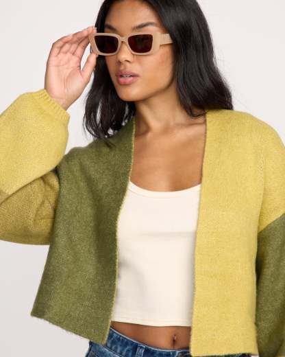 Our cropped, open front Womens Sweater wraps you in a cozy knit blend complete with a sleek metal detail. This lightweight, versatile layering piece effortlessly elevates any look. Featured here in the Green Tea colorway.
