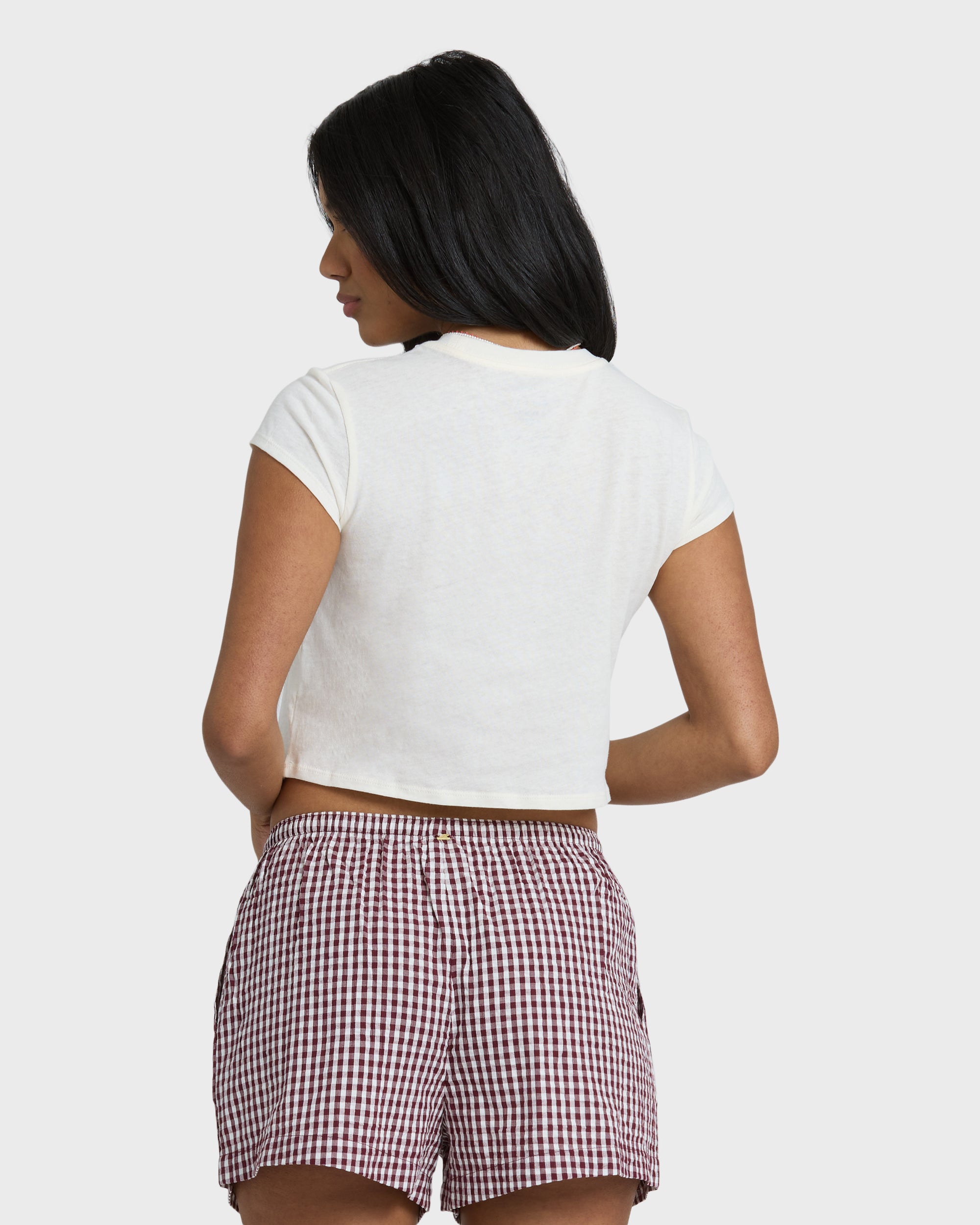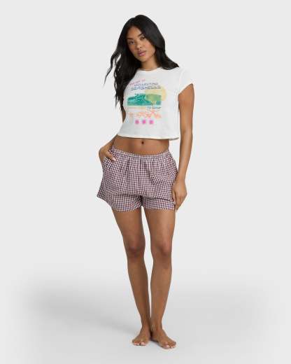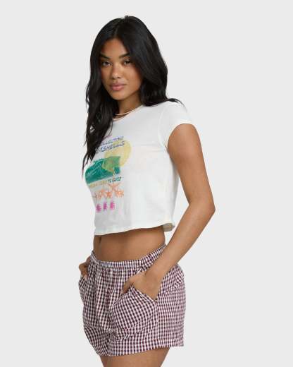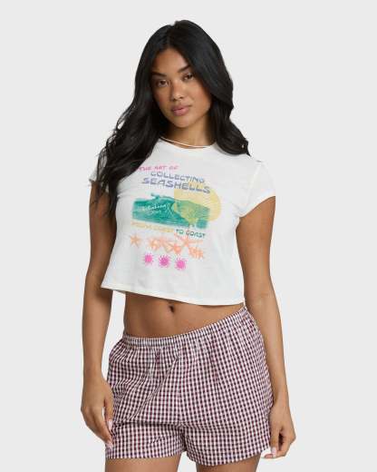 Keep it cute and carefree in our Coastal Adventures Short Sleeve T-Shirt. This relaxed-fit crew neck tee brings casual style with its eye-catching screen print and comfortable 100% cotton construction. The cropped silhouette pairs perfectly with high-waisted bottoms for an effortlessly cool look.