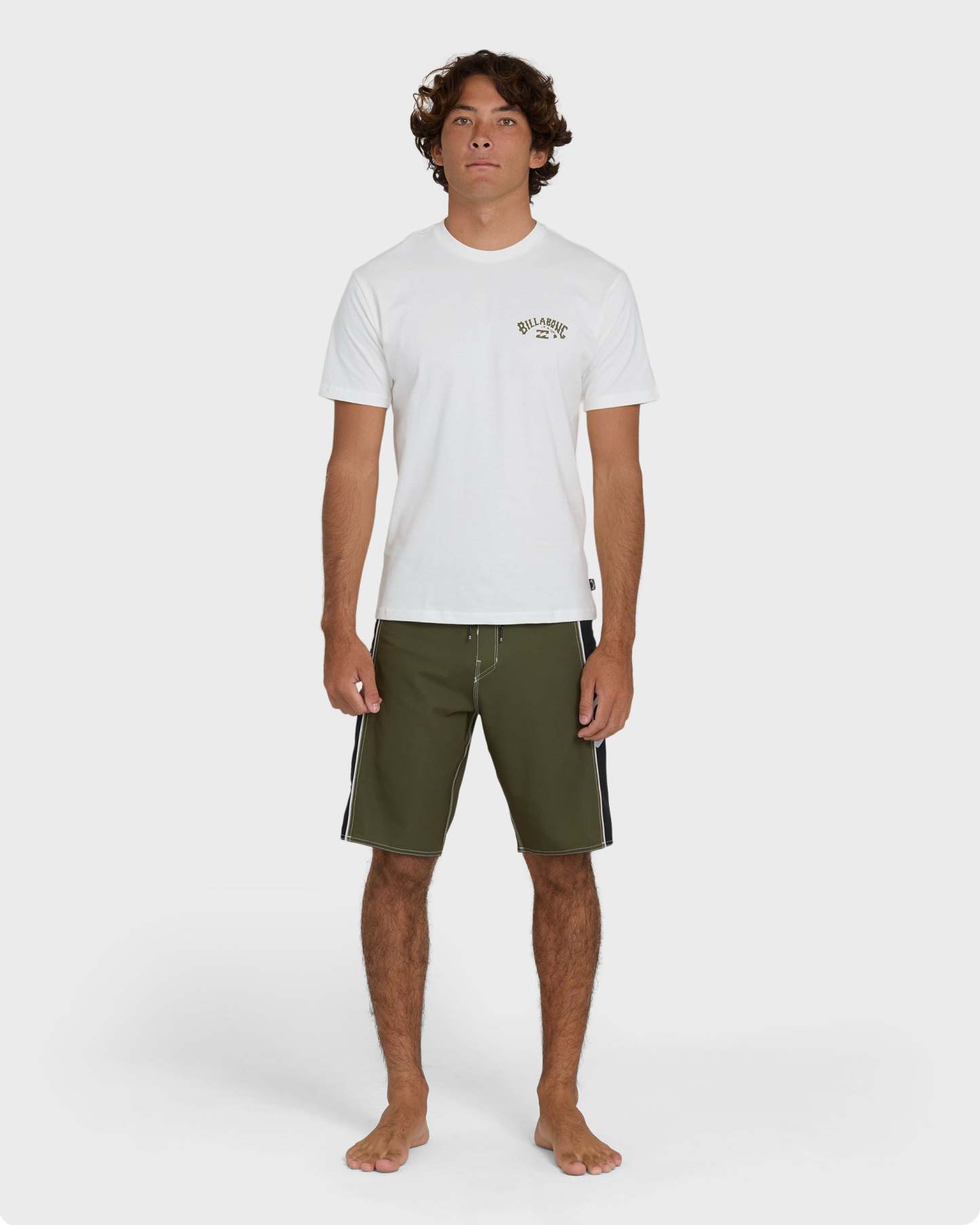Our performance boardshorts combine four-way stretch with an 18.5-inch athletic fit. Custom printed leg panels add style, while the fixed waist and back patch pocket keep everything secure during intense sessions. Featured here in the Green colorway.