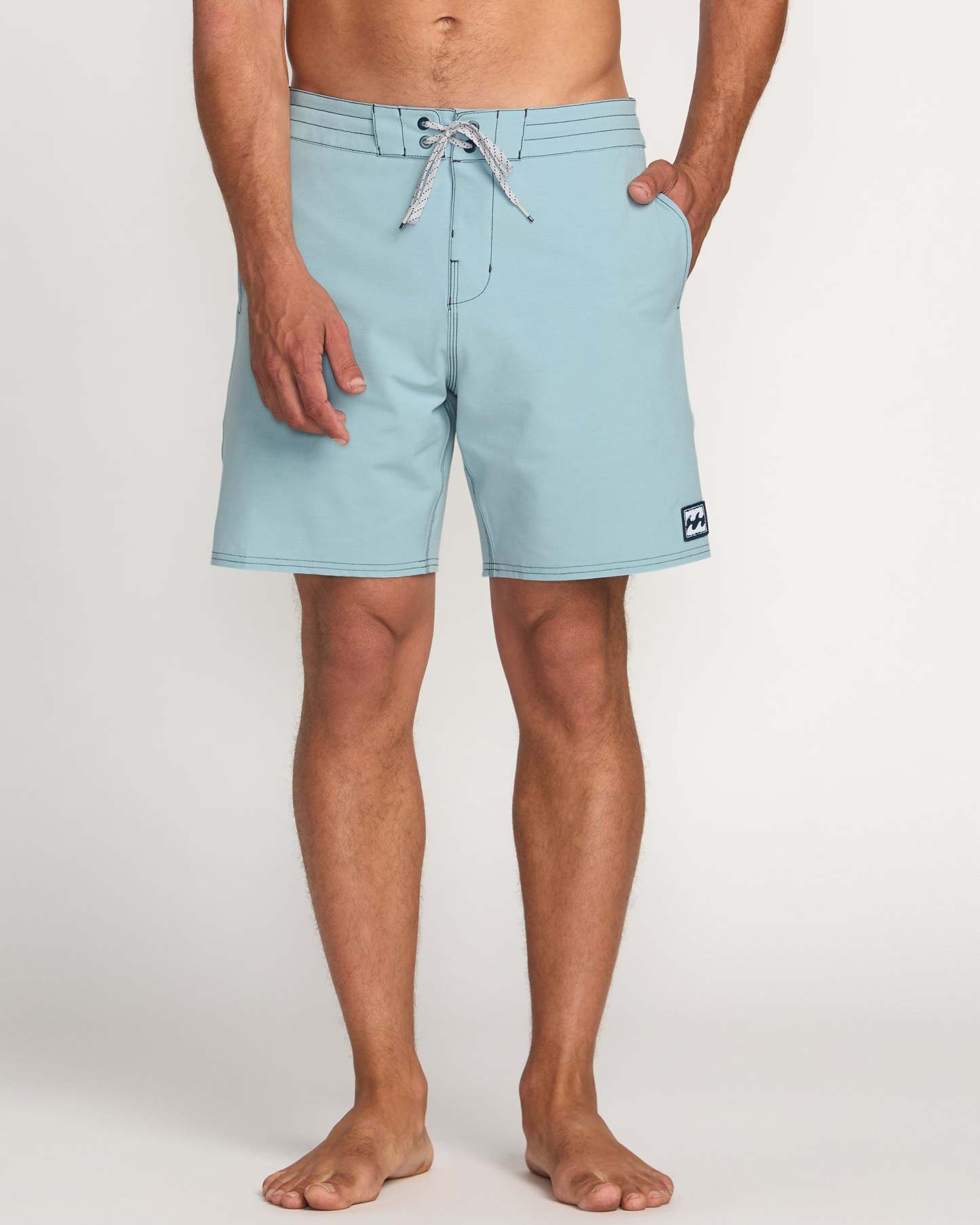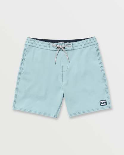 Our Billabong poly cotton stretch boardshorts are built for beach life with a 18" Lo Tide Fit. Side seam pockets and a back patch pocket offer nifty storage, while the fixed waist ensures a secure fit to catch waves all day. Featured here in the Cloud Blue colorway.