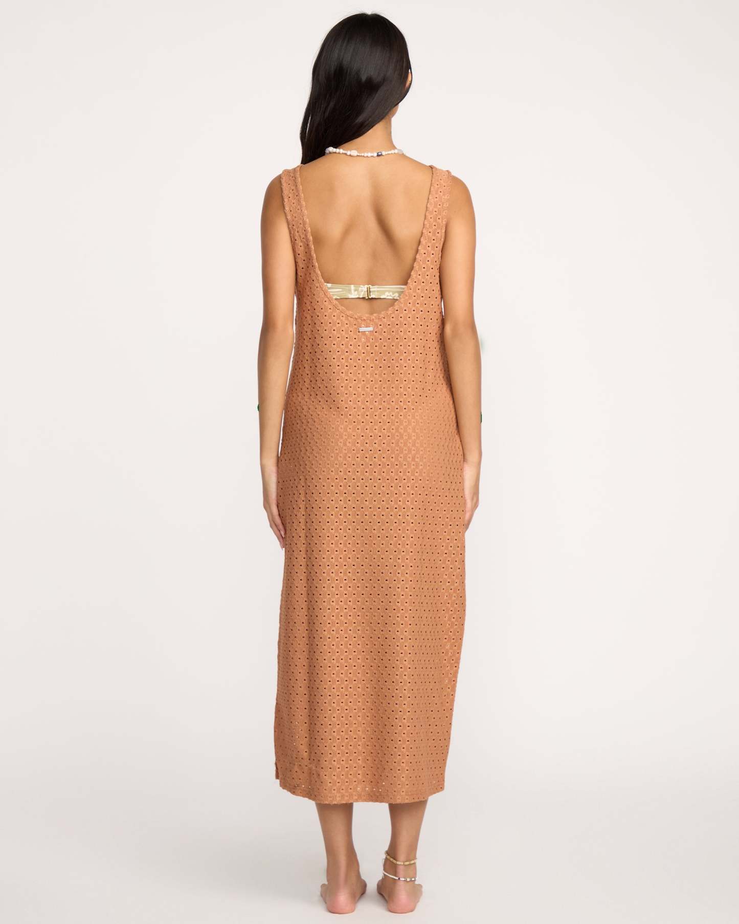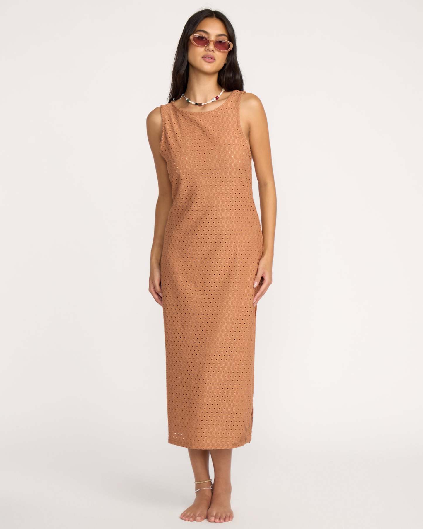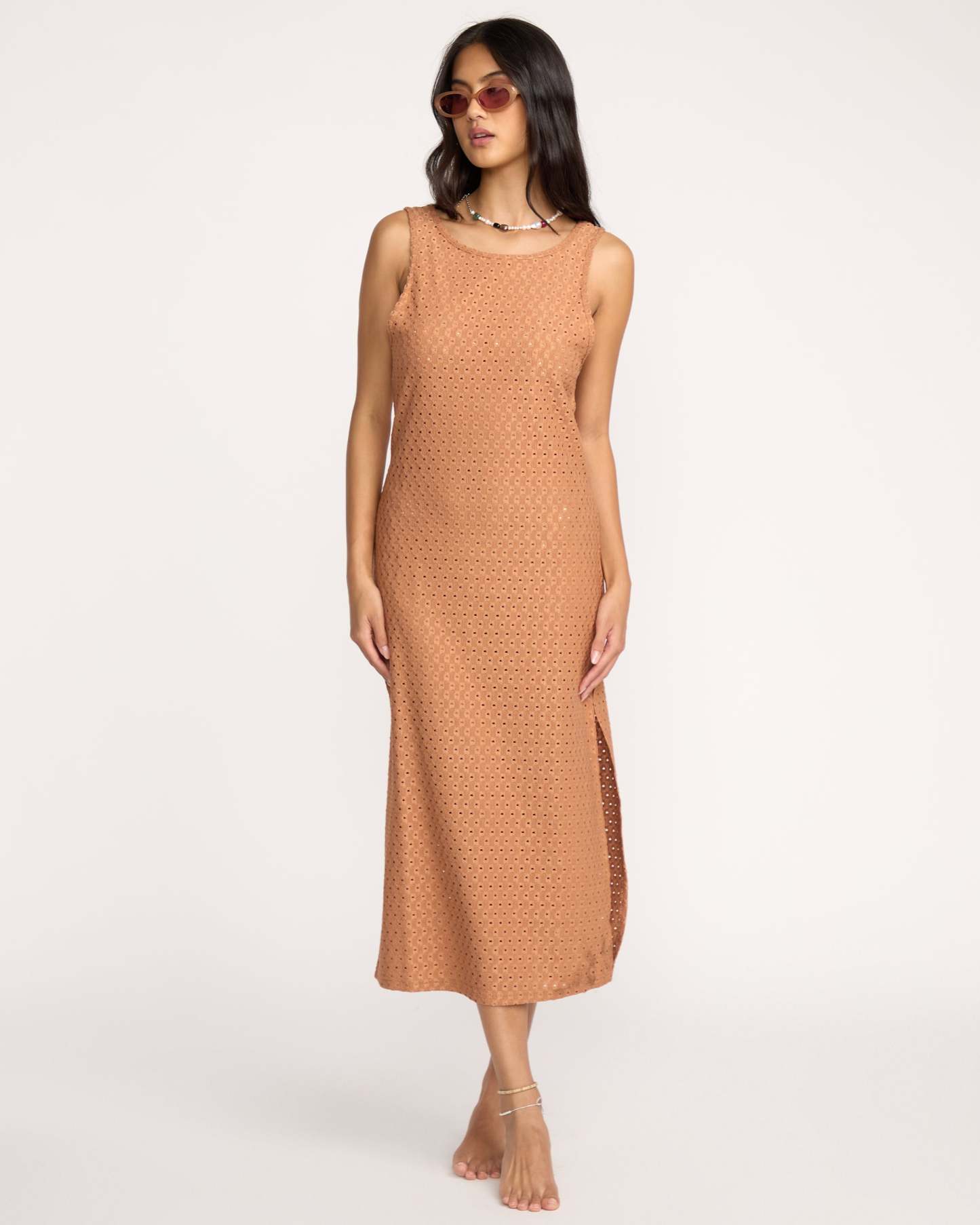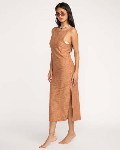 Eyelet Sun Midi Dress Beach Coverup - Rose Brown
