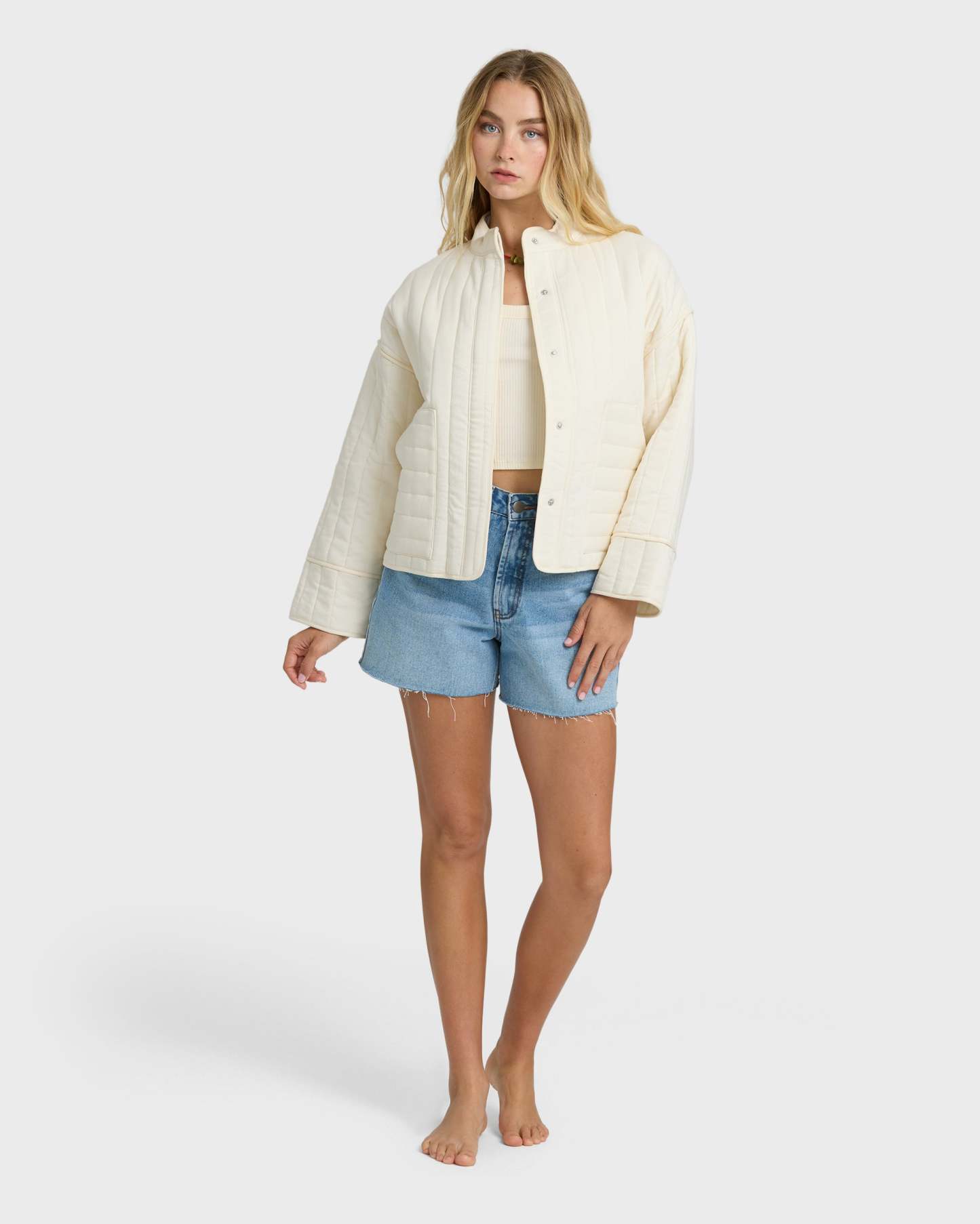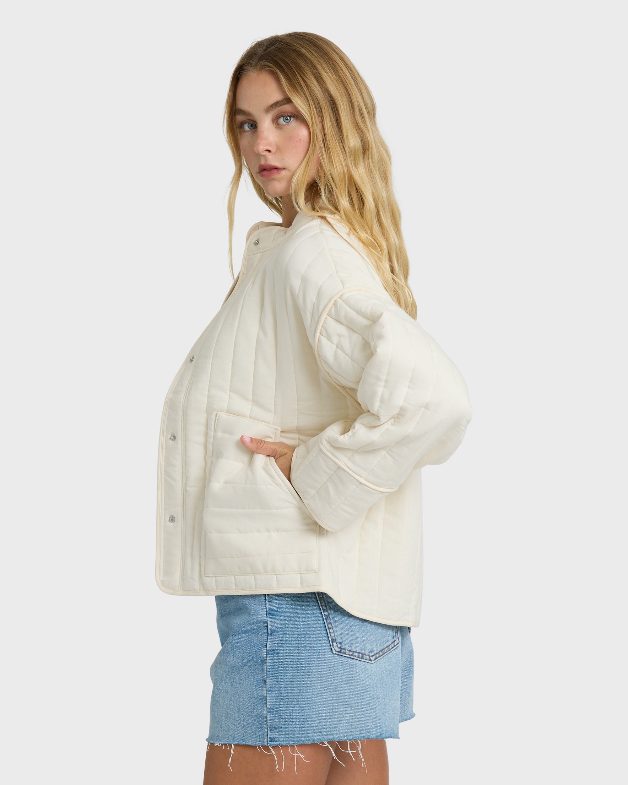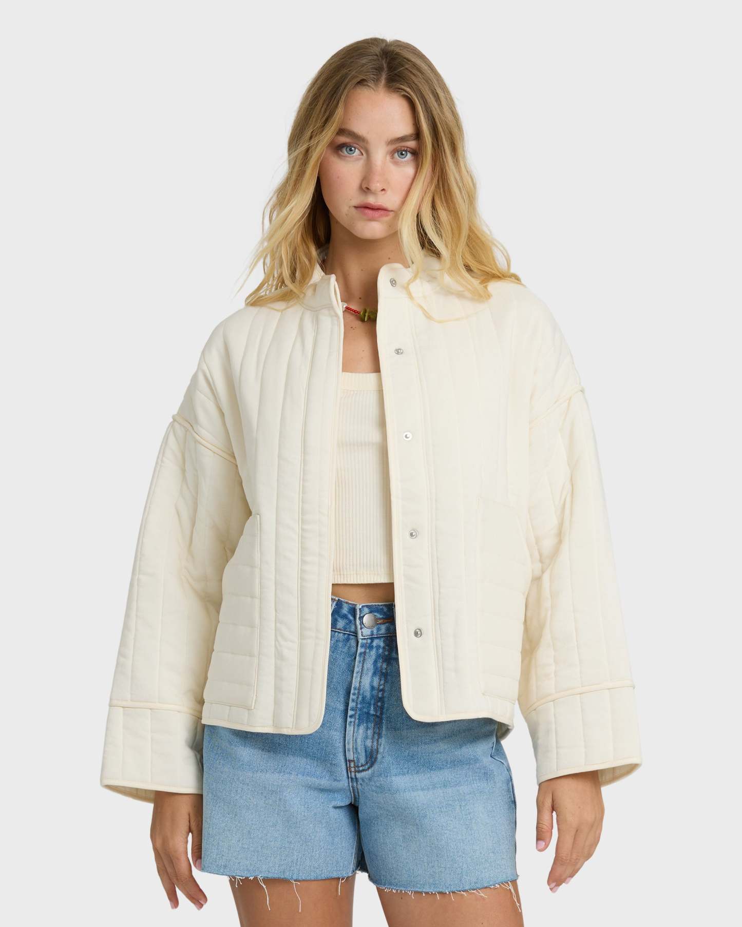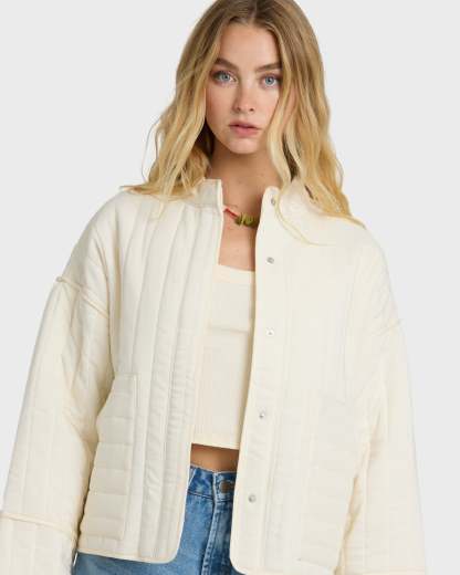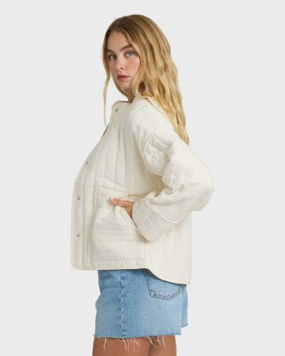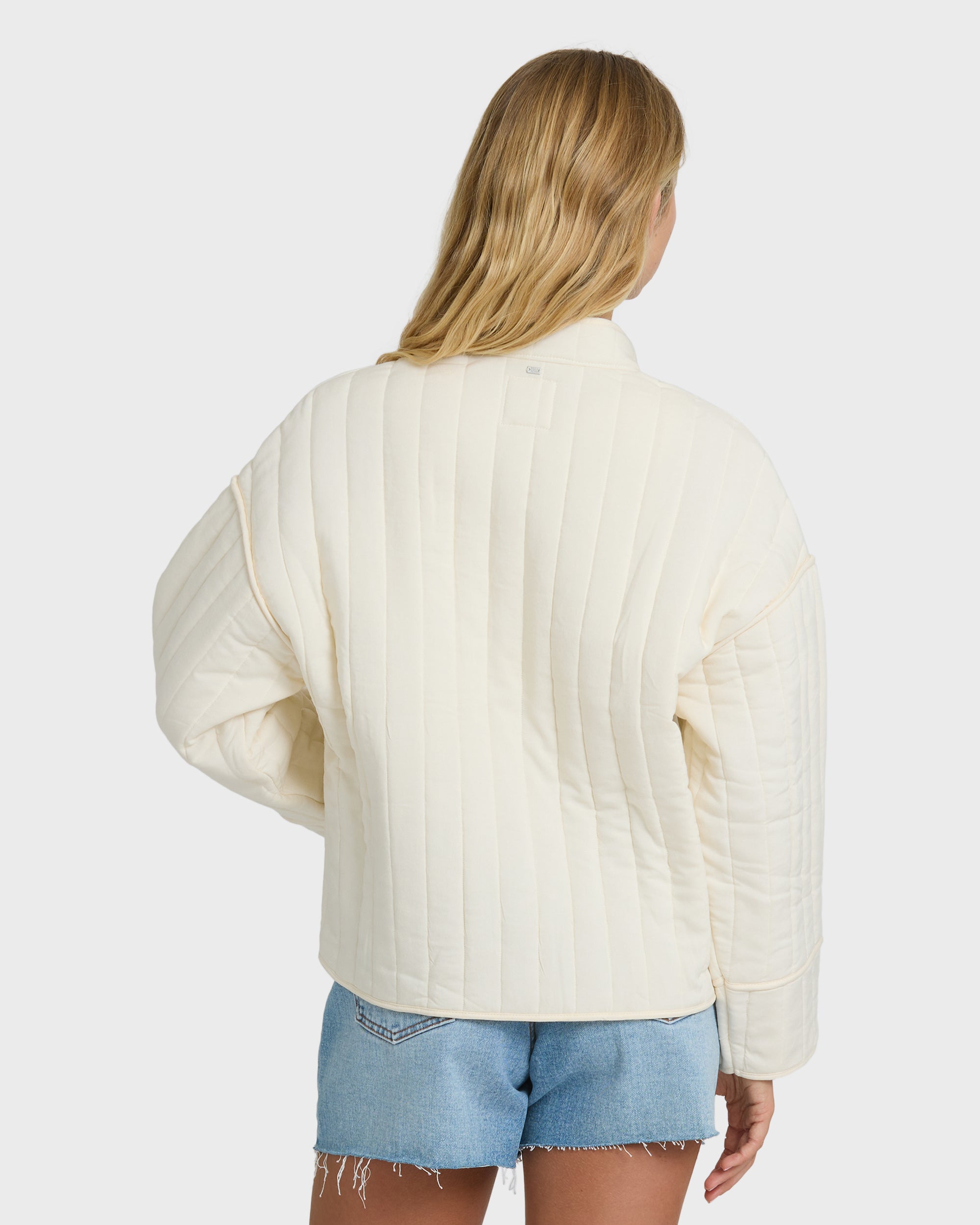 Cozy up in our Folk Story 2 Quilted Jacket in White Cap with its perfectly oversized fit and luxe viscose fabric. Snap closures make for easy on-off, while roomy patch pockets keep essentials close. The cozy quilted pattern and metal plate detail add just the right touch of sophistication to your everyday look.Part of the Billabong Des Tropiques Collection — a sun-soaked escape of effortless layers and island accents, capturing that forever-on-holiday feeling.