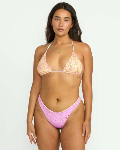 Get two cute looks in one reversible bikini bottom, made from comfortable, stretchy peach fabric. Then soak up extra sun on your hips with the skimpy cut and high leg lines. Featured here in the Multi colorway.