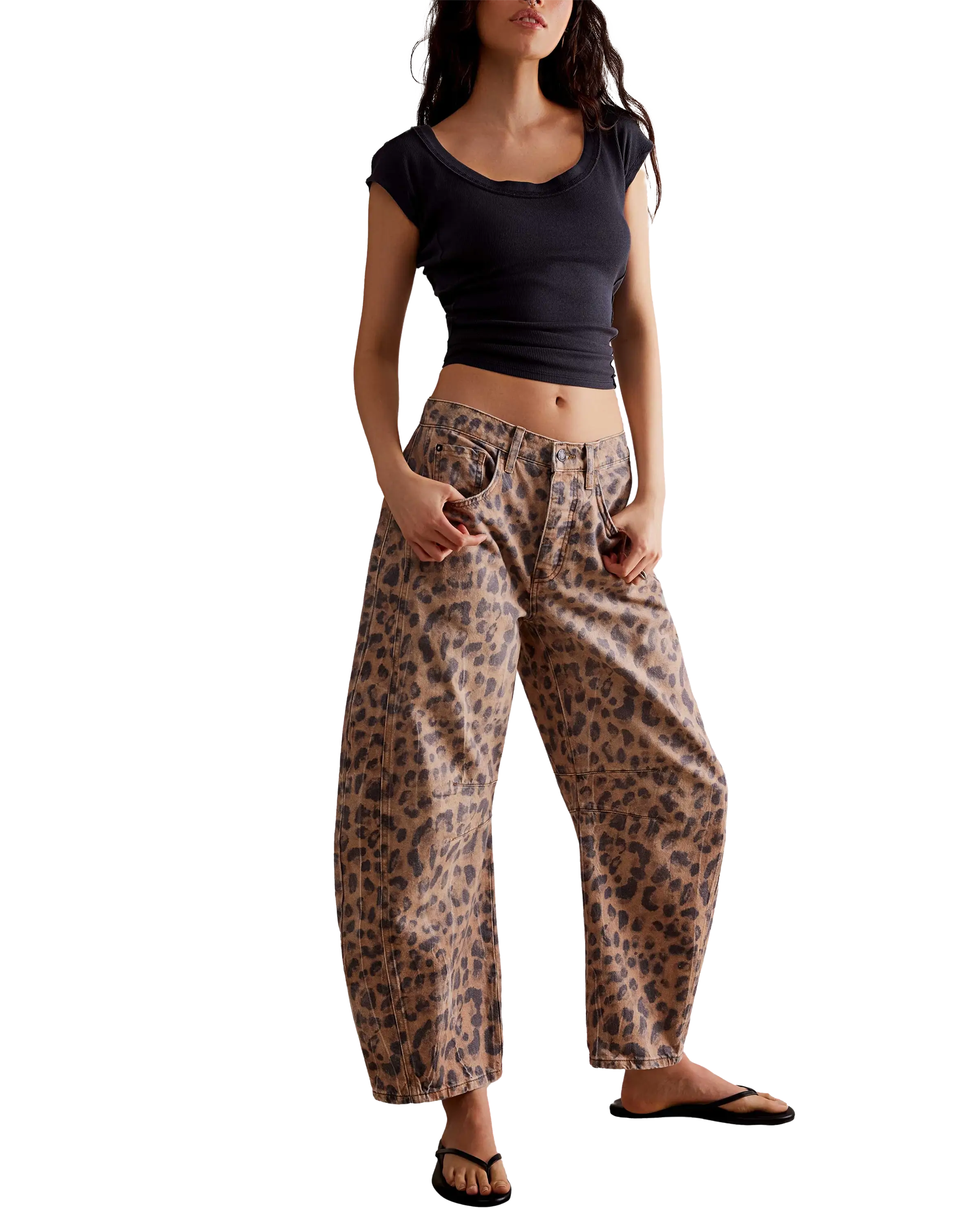 Whether you're dressing up for a day out or keeping it casual, these printed barrel jeans are the perfect addition to your wardrobe. Embrace the blend of comfort, style, and playful design with this standout piece from Free People.