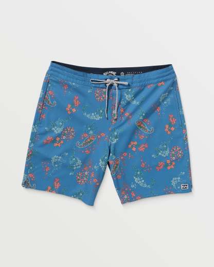 Lightweight yet durable poly-cotton stretch boardshorts with a versatile 18" lo tide length. Featuring handy back patch and side seam pockets, plus a secure drawstring waist, these Billabong shorts were made for endless summer adventures. Featured here in the Bay Blue colorway.