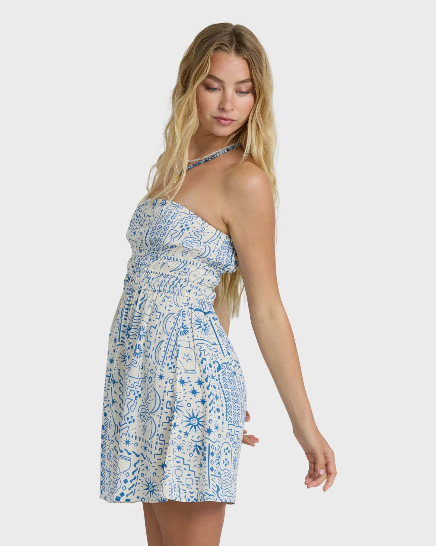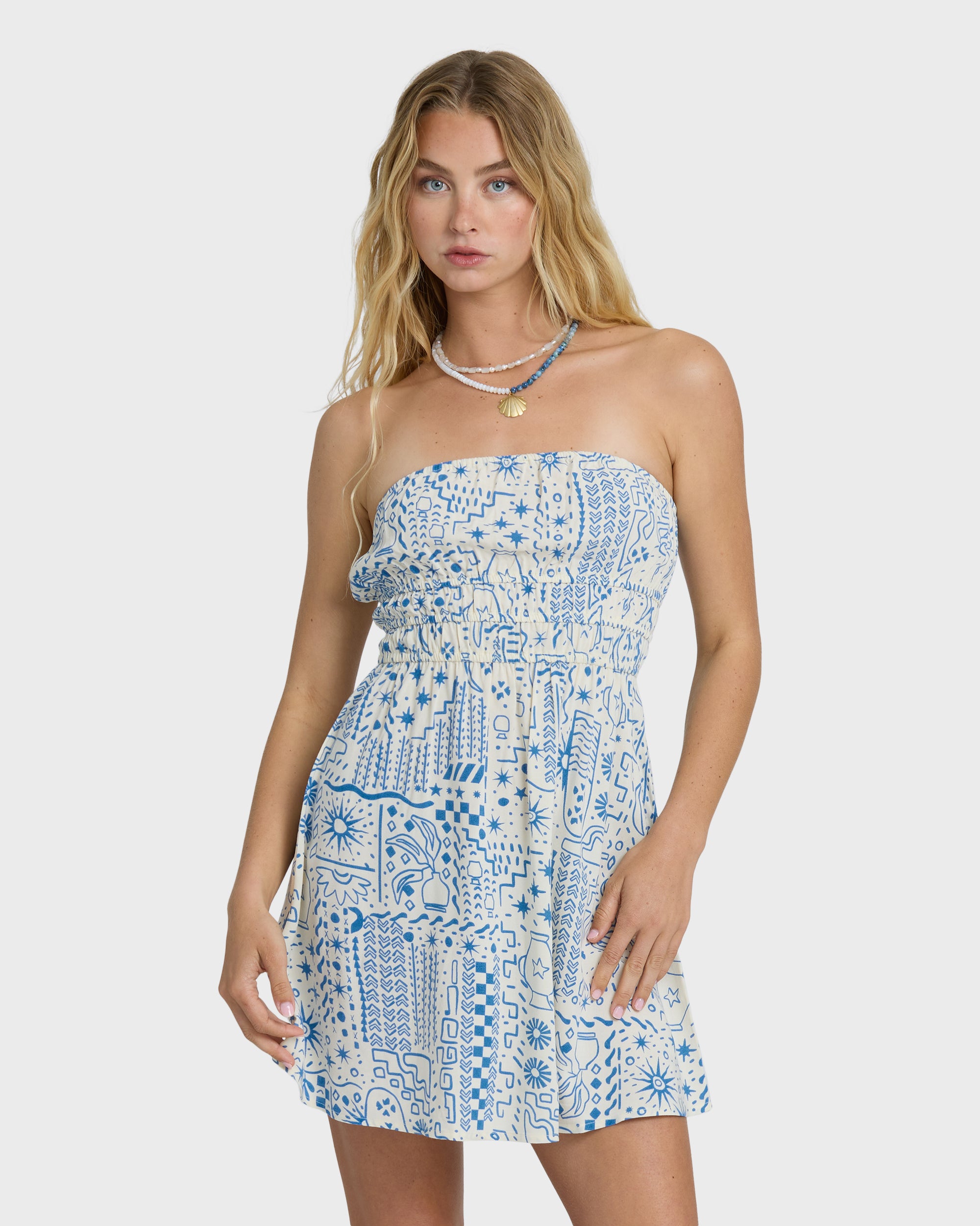 Float through your day in our In The Sky Mini Dress. The viscose poplin fabric feels light against your skin, while the elastic waistline creates a flattering fit-and-flare silhouette. At 34" from shoulder to hem, this breezy strapless mini dress keeps you effortlessly cute and comfy.Part of the Billabong Le Surf Le Love Collection — a sun-faded ode to sea-bound romance, where effortless silhouettes capture the spirit of a girl forever guided by the waves.