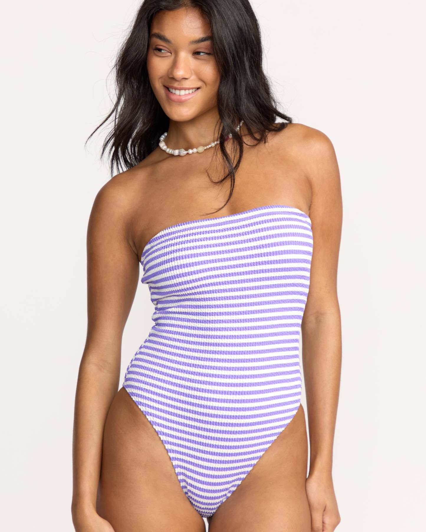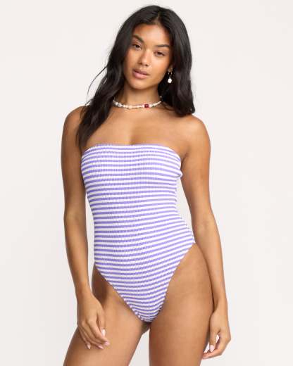 Our tube-top one-piece swimsuit offers two looks in one with removable straps. The built-in shelf bra provides just-right support, while the minimal coverage design keeps you feeling confident and free. Featured here in the Purple colorway.