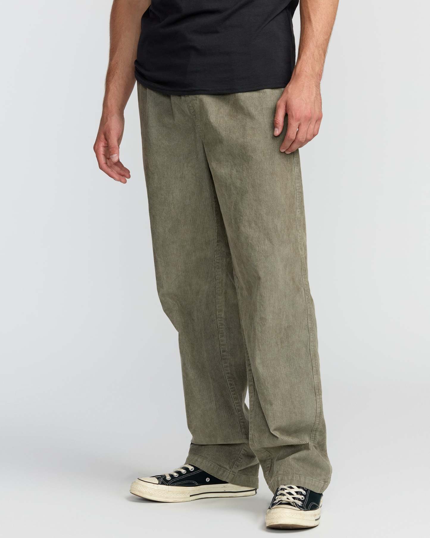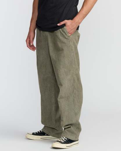 Larry Elastic Waist Corduroy Pants - Green Ash