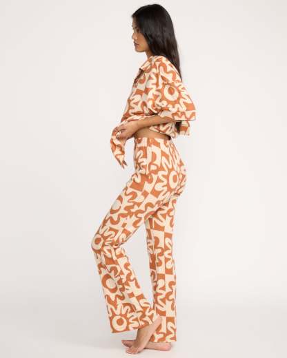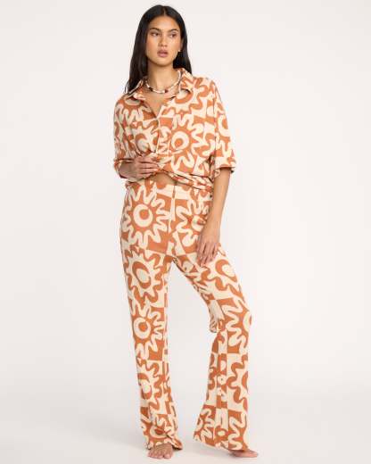Our cotton jacquard knit pants blend retro style with modern comfort. The high-waisted silhouette and slight flare create a flattering look, while the elastic waistband keeps things effortlessly easy. Featured here in the Orange colorway.