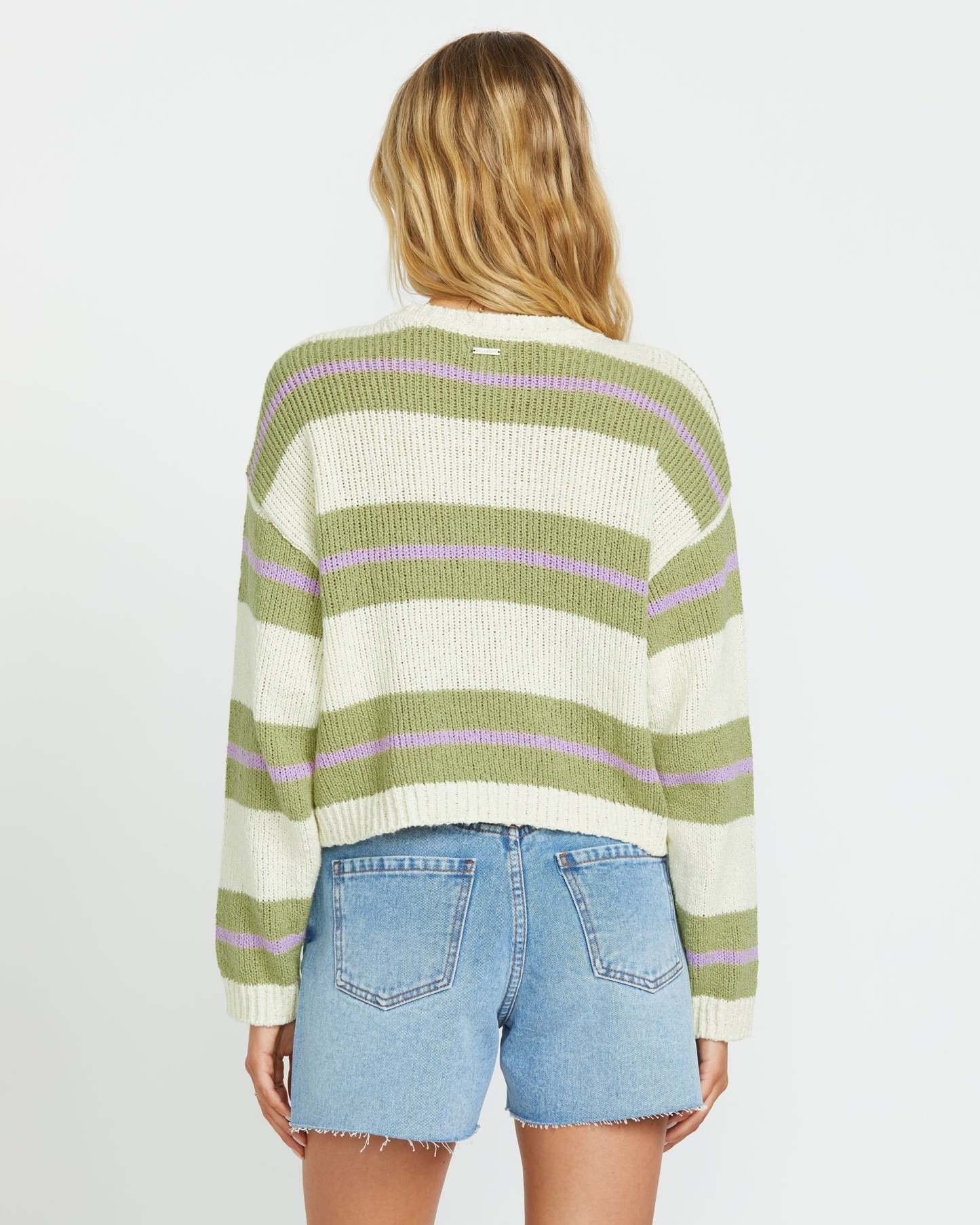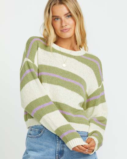Make it waves. This striped cotton/nylon sweater layers on just the right amount of cozy warmth with its relaxed fit, scoop neck, and long sleeves. Easy, effortless, style. Featured here in the Avocado colorway.