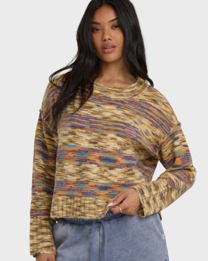 Our space dye stripe sweater brings cozy vibes with its relaxed fit and crew neckline. This acrylic-blend knit keeps you looking stylish while staying comfortable for whatever your day brings. Featured here in the Brown colorway.