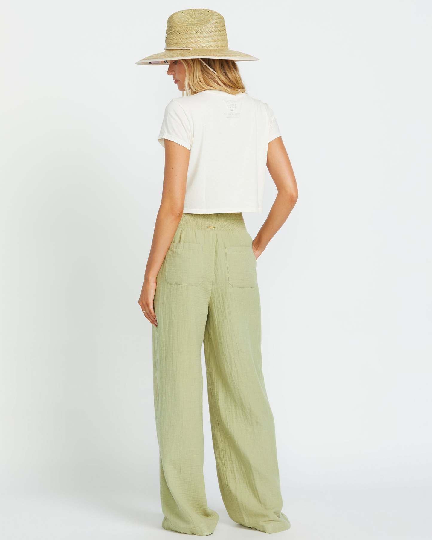 New Waves Gauze Elastic Waist Pants - Avocado