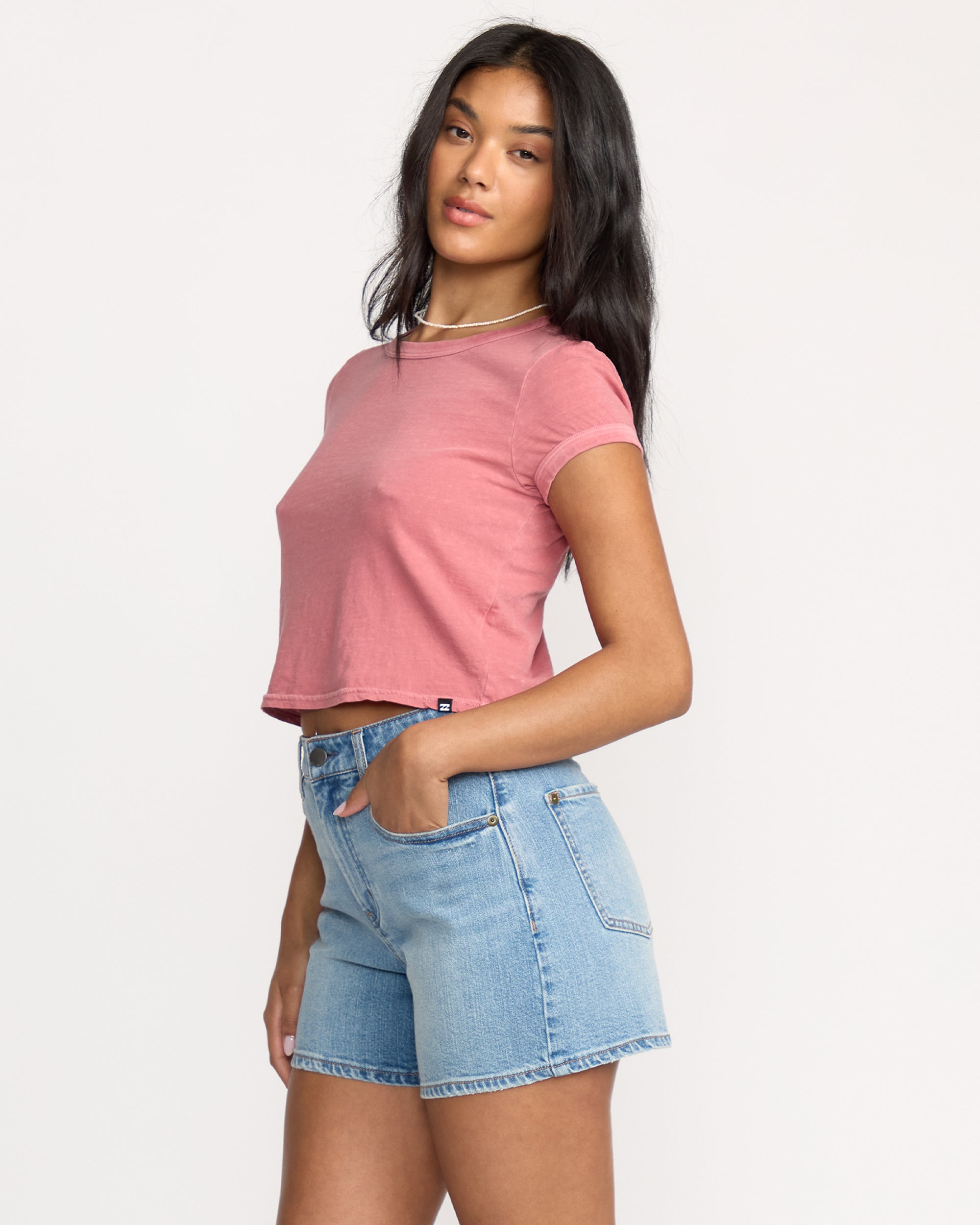 Our high-rise denim shorts bring comfort and style together with a regular fit that flatters every body type. The cotton-blend fabric moves with you, while five pockets keep essentials close at hand. Featured here in the Blue colorway.