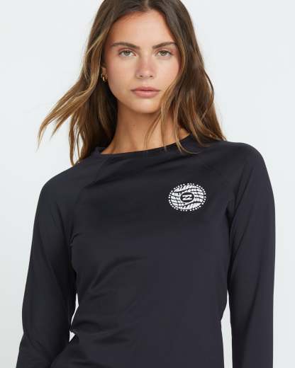 Our Billabong partially recycled rashguard protects your summer adventures with UPF 50 coverage. Stretchy, long sleeves move with you from surfing sessions to workouts. Featured here in the Black Pebble colorway.