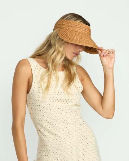 Our 100% straw Sun Spell Visor keeps you cool and shaded with a packable, portable design-perfect for beach days. The elastic back provides a custom fit and stylish branded plaque.
