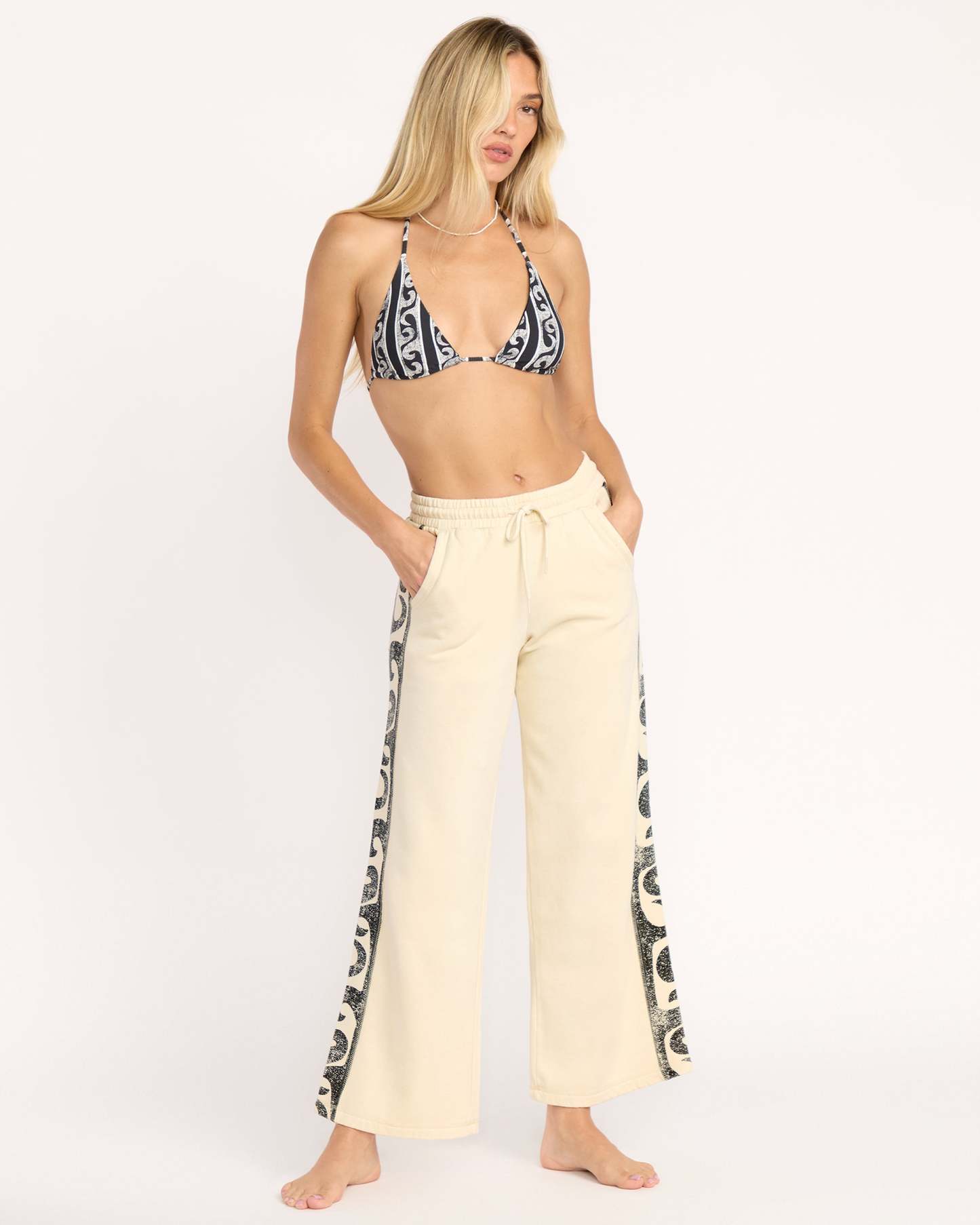 Our Sun Wave Sweatpants blend cozy cotton-blend fleece with laid-back style. The high-waisted, relaxed fit features an adjustable drawcord, handy side pockets and eye-catching side prints for casual comfort. Featured here in the White colorway.