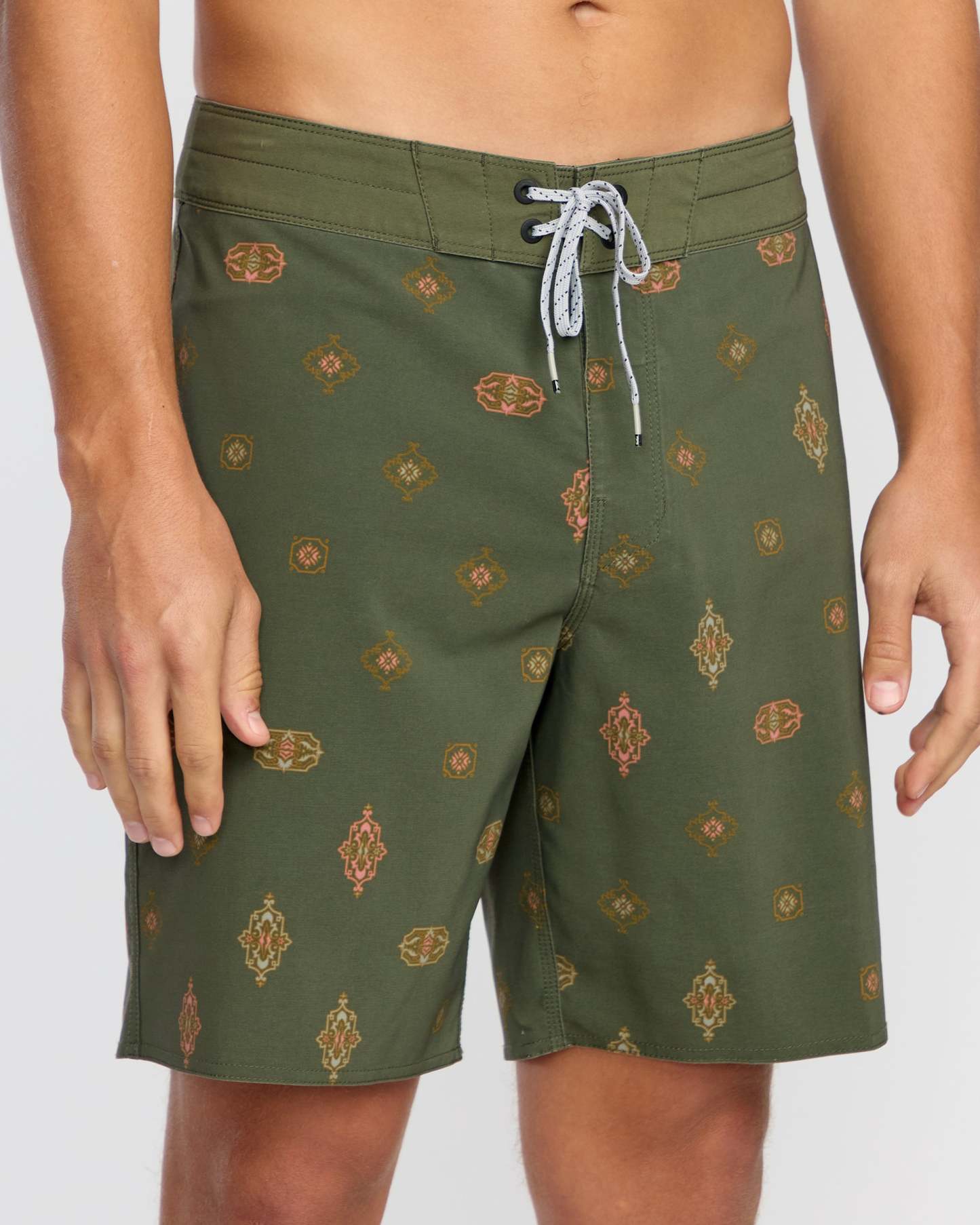 Dominate the waves with our Billabong Sundays Pro Performance Boardshorts, offering 4-way stretch and 19" performance fit for unrestricted motion. Featuring all over sublimation prints, a back patch pocket, fixed waist, and woven branding. Featured here in the Military colorway.