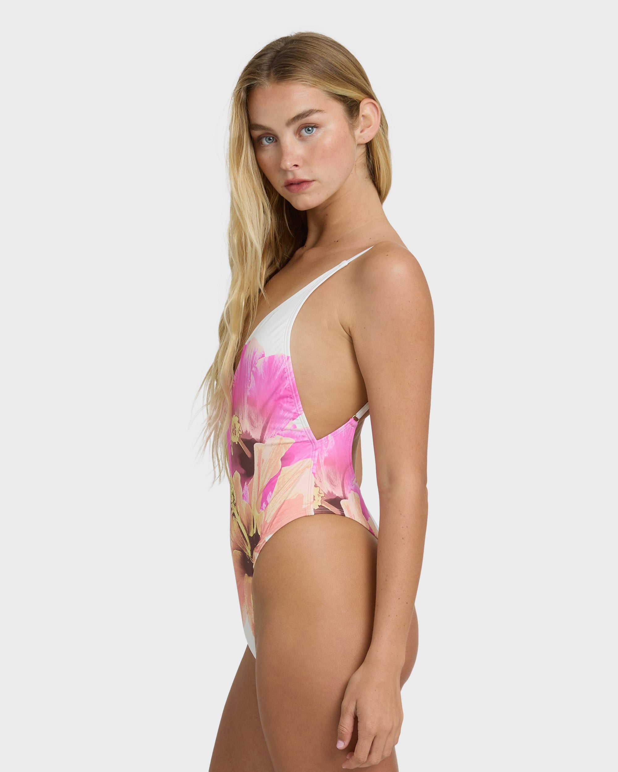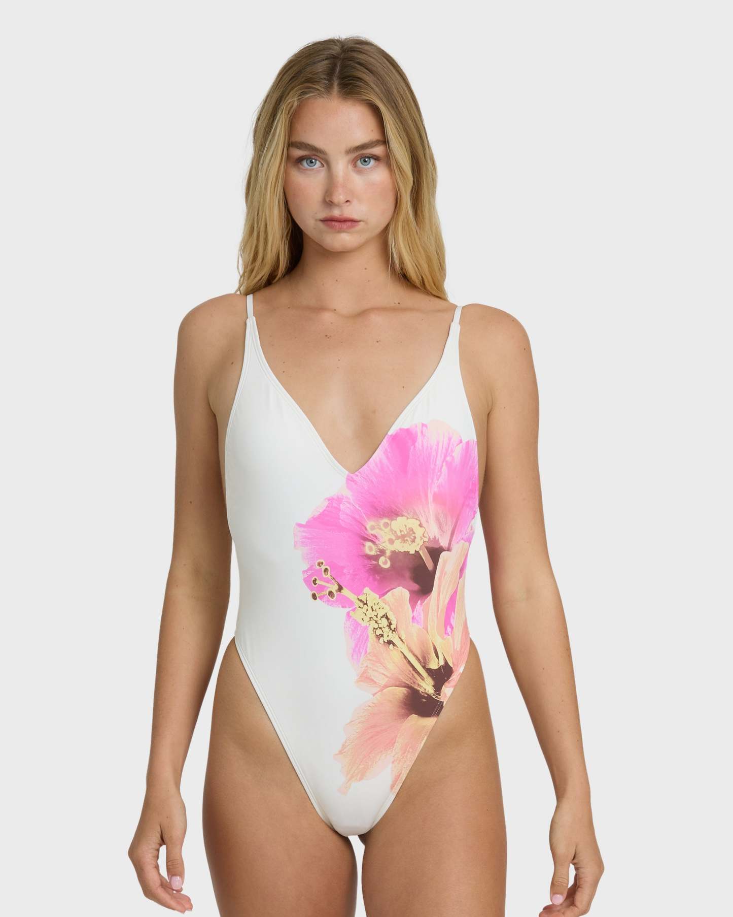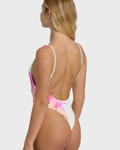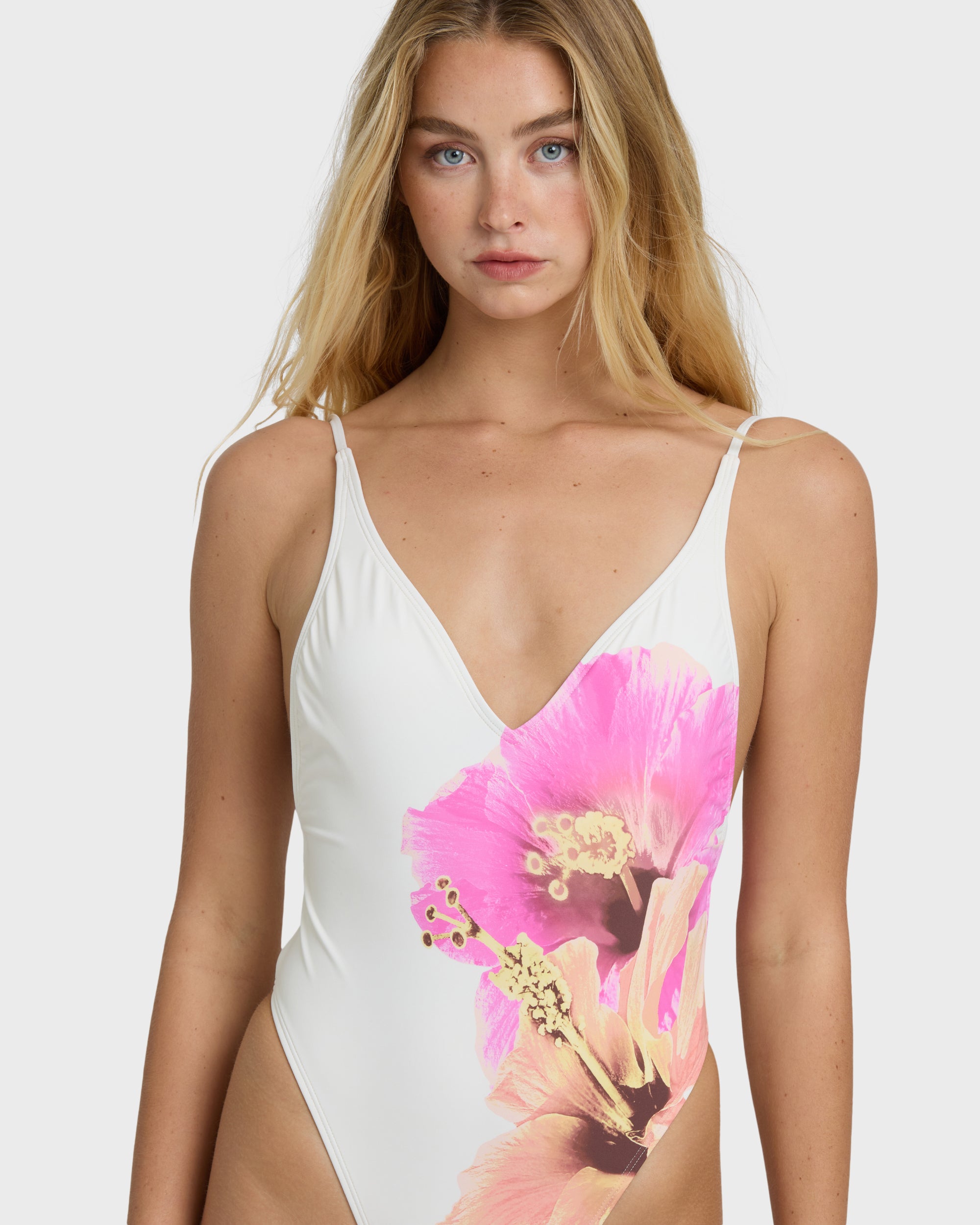 Dive into summer with our Sunny Shore Deep V One-Piece. This high-leg swimsuit sits perfectly on your hips with skimpy bum coverage for a flattering silhouette. Featuring adjustable straps with O-rings and floral placement prints on the front and back. Made with partially recycled materials for swim style that feels as good as it looks.