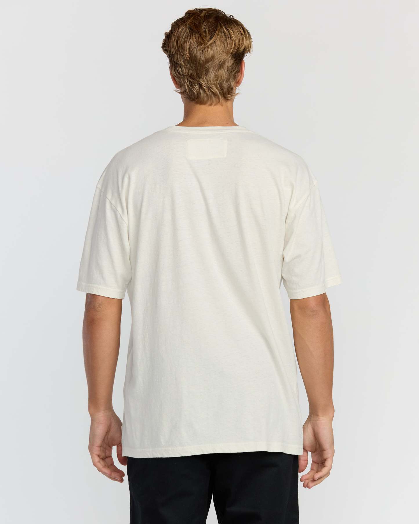 Our classic-fit short sleeve t-shirt brings everyday comfort with its cotton-hemp blend and relaxed shoulders. Wave-washed for that lived-in feel, featuring artful screen printing and subtle embroidered details. Featured here in the Beige colorway.