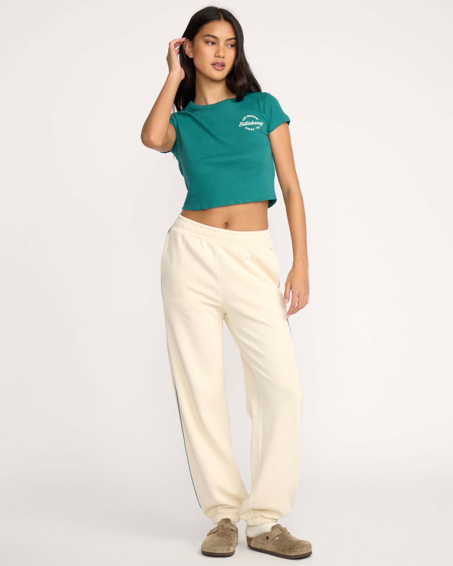 - Elastic waist pant, on seam pockets