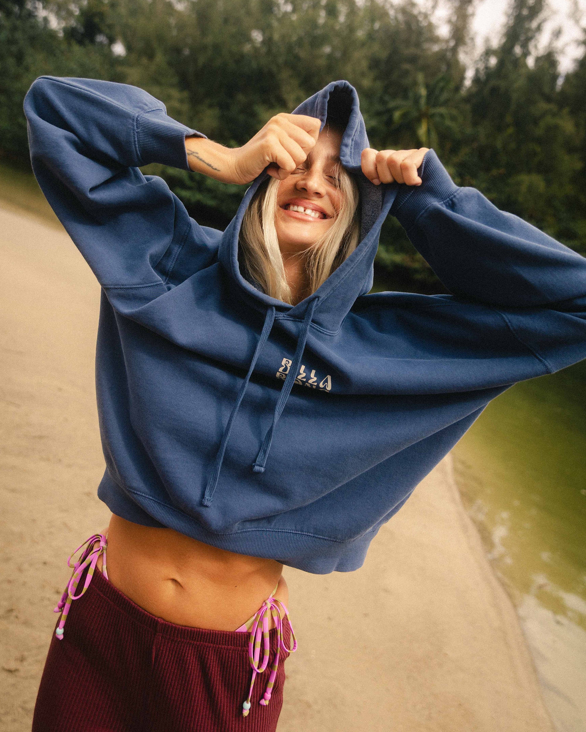 Soft cotton-blend heather fleece meets street style in our oversized hooded pullover. Eye-catching graphics grace the front and sleeve, while an adjustable drawcord hood keeps your look as cozy as it is cool. Featured here in the Blue colorway.