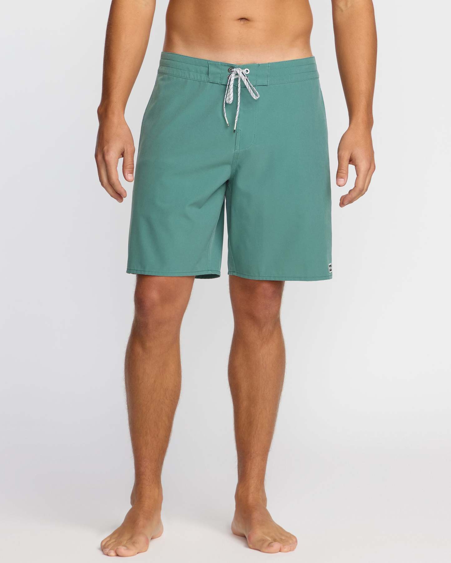 Our Wategos Lo Tide 19" Boardshorts flex with 4-way stretch construction, hug the waist with a fixed fit, and add a pop of style via contrast taping. Featured here in the Sage Green colorway.